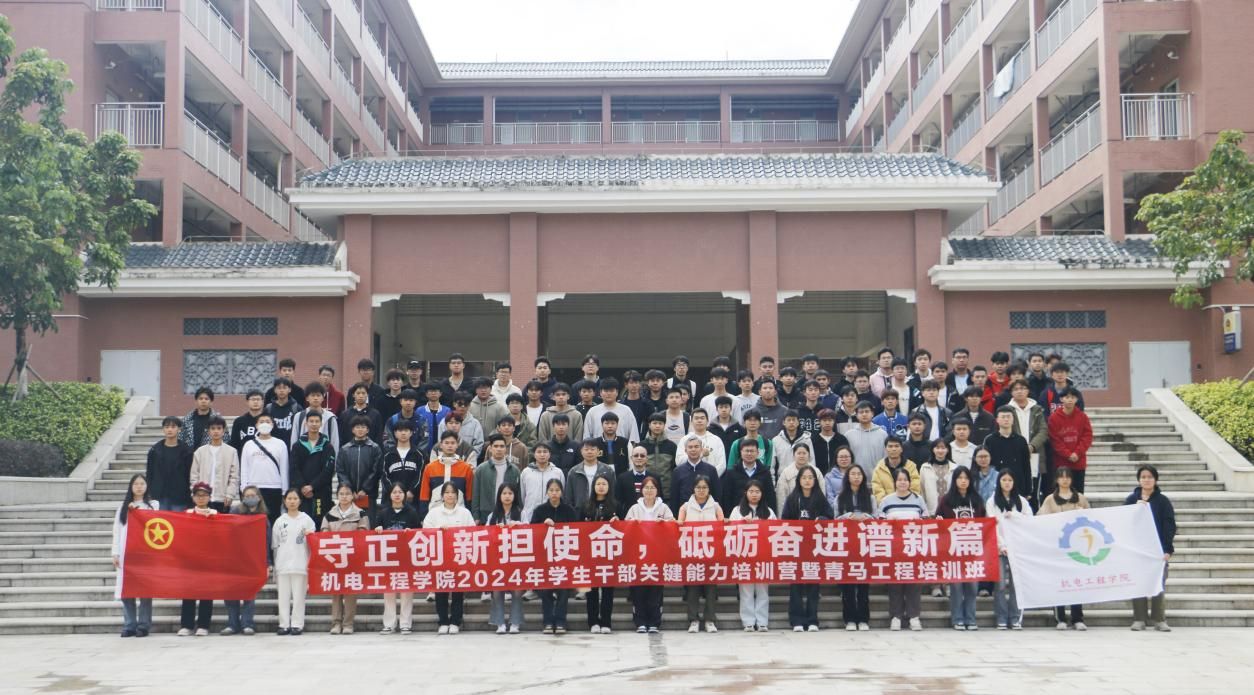 为深入学习贯彻习近平总书记关于青年工作的重要思想,不断保持和增强青年学生的政治性、先进性、群众性,着力提升团学骨干“三力一度”作用,用实际行动奋力书写“请党放心,强国有我”青春华章,3月11日,机电工程学院在创新楼102课室举行2024年学生干部关键能力培训营暨“青马工程”培训班开班第一课。参加本次会议的有机电工程学院党委书记江能兴、党委副书记刘元平,辅导员、组织员,团委、学生会及工作室各部门学生骨干,各班级团支部学生骨干等。会议由机电工程学院团委书记谭文海主持。