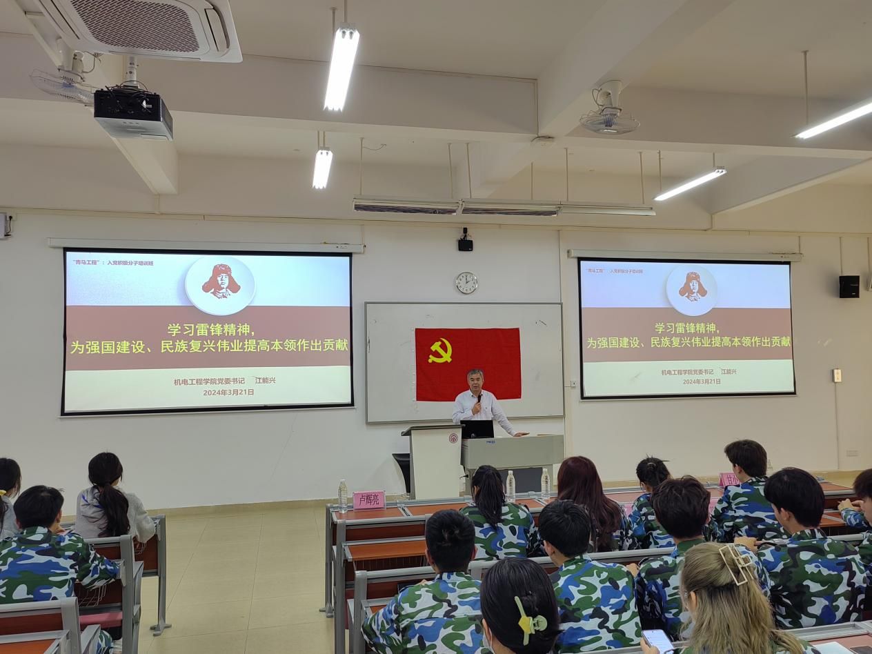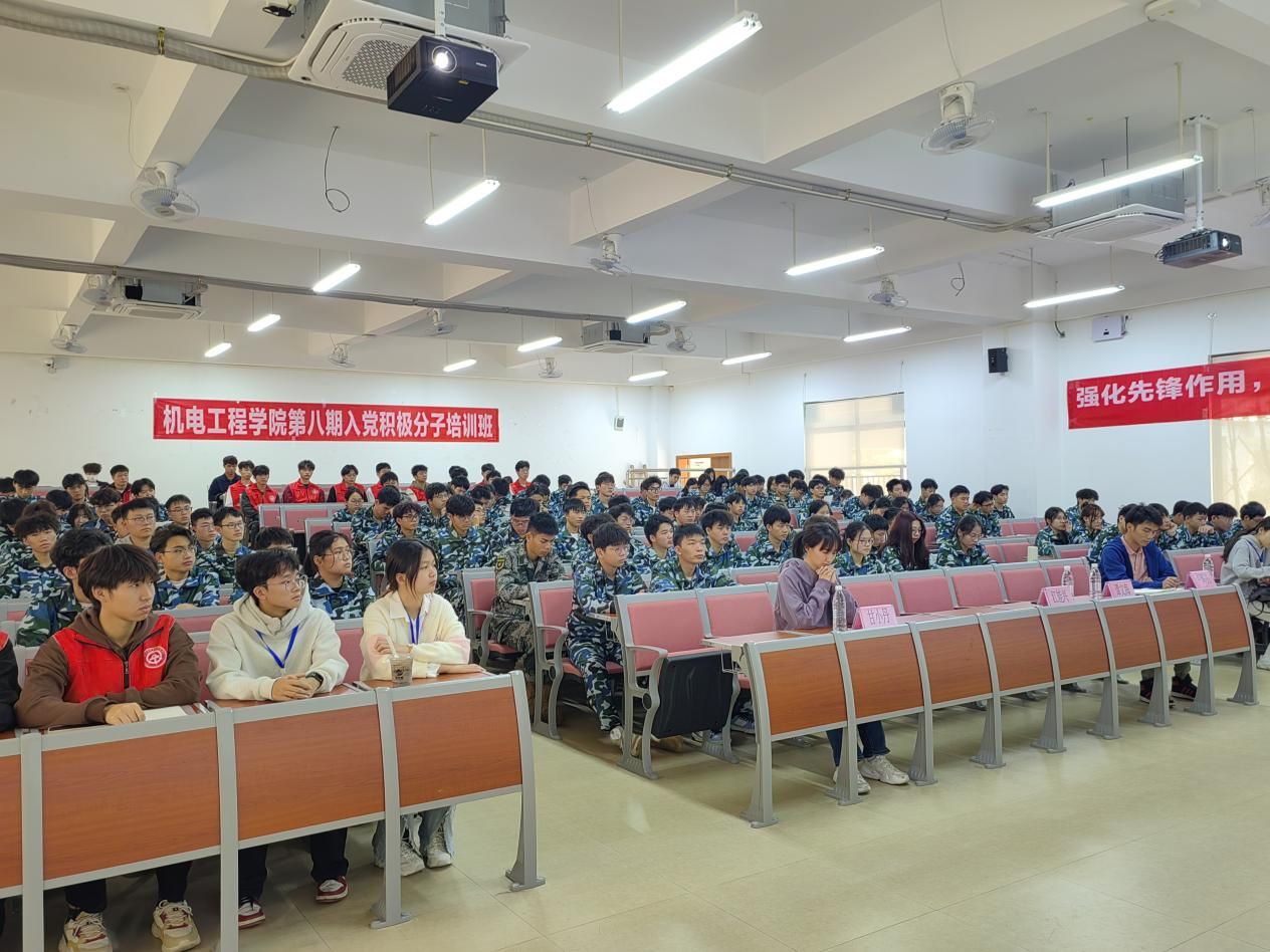 为深入学习贯彻习近平新时代中国特色社会主义思想和党的二十大精神,进一步加强对入党积极分子的培养教育,提高思想觉悟和政治素养,3月21日,机电工程学院在清远校区创新楼102室举行第八期入党积极分子培训班开班典礼。机电工程学院党委书记江能兴,辅导员,团委、学生会学生骨干代表及第八期入党积极分子等参加此次活动。
