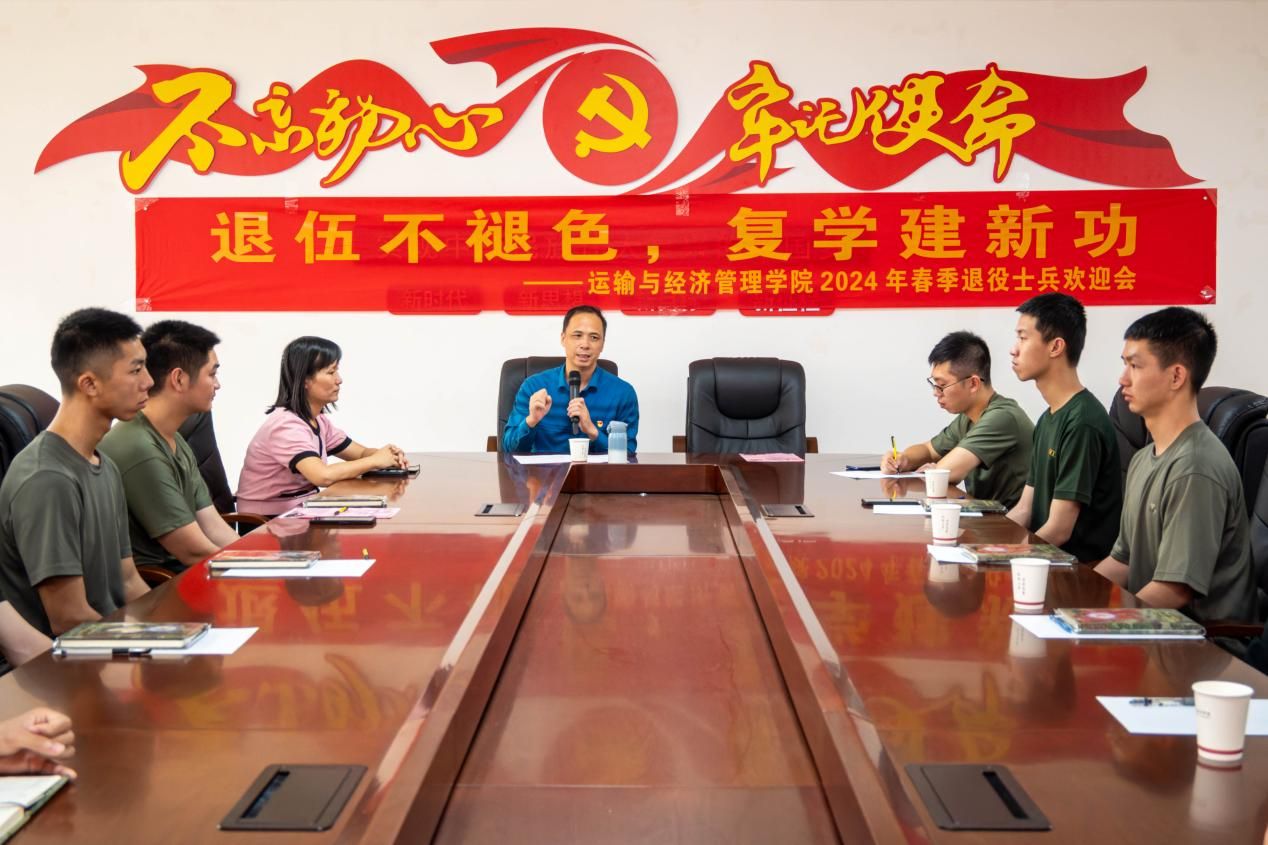 4月9日,运输与经济管理学院在厚德楼301会议室举行了“退伍不褪色,复学建新功”主题退役军人座谈会暨2024年春季退役士兵欢迎会,学院党委书记伍雄晖、副书记谢锐琼,辅导员曾生峰以及全体退役复学学生参加座谈会。