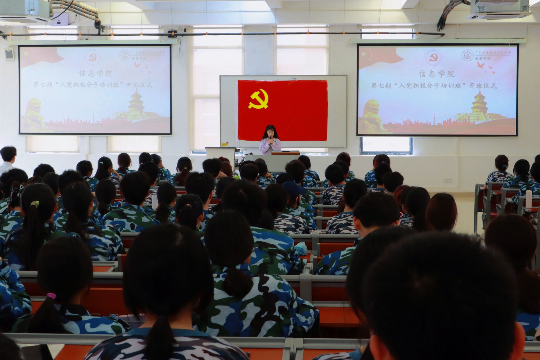 4月11日下午,信息学院在笃实楼303课室举行第七期入党积极分子培训班开班仪式。信息学院全体辅导员、学生骨干代表及第七期入党积极分子等300余人参加了开班仪式。