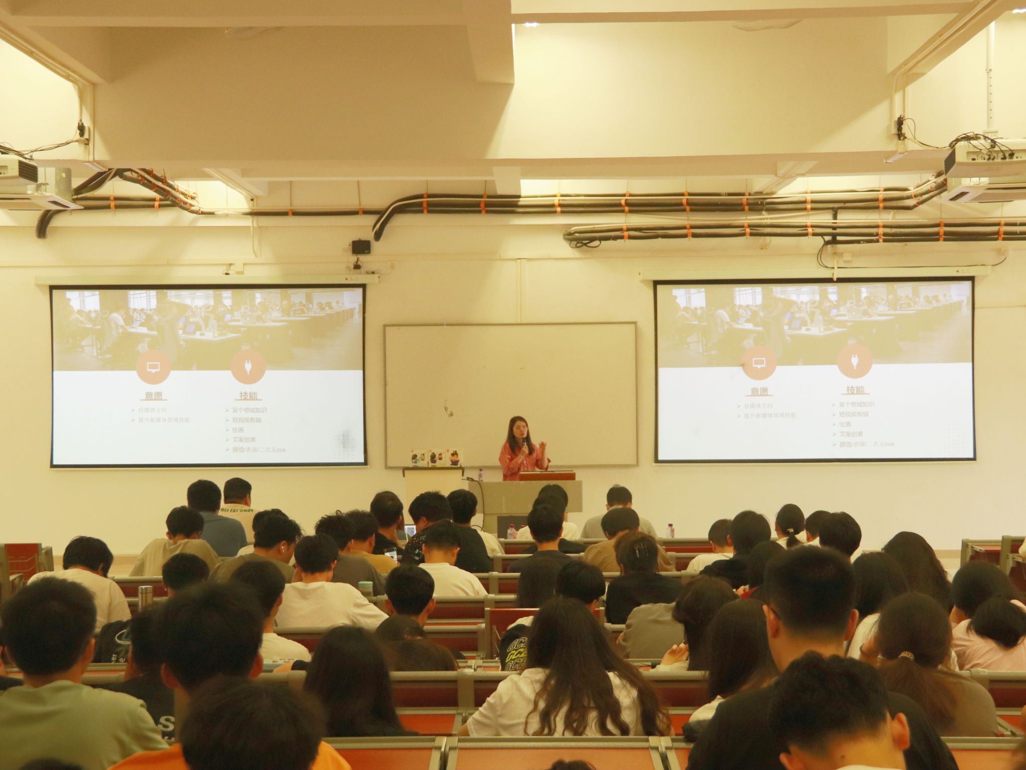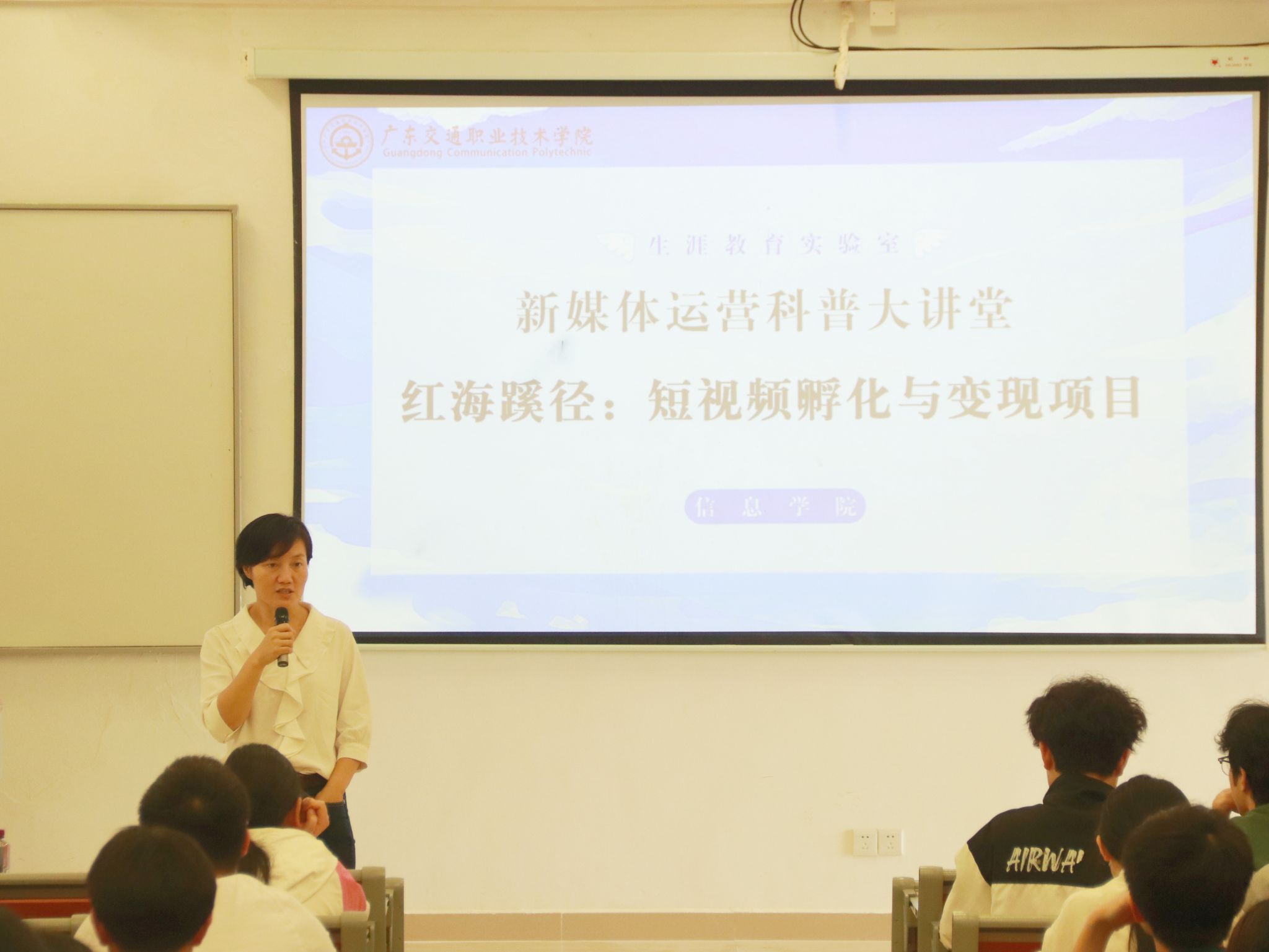 4月18日,信息学院在清远校区笃实楼101室举办职业生涯教育系列活动之新媒体运营专题讲座。广州捷纽因信息科技有限公司合伙人邝芳丽、信息学院数字媒体技术专业教师关少珊、威之廉科创基地企业导师陈仁俊以及200余名学生参加了本次讲座。活动由信息学院辅导员李桃主持。