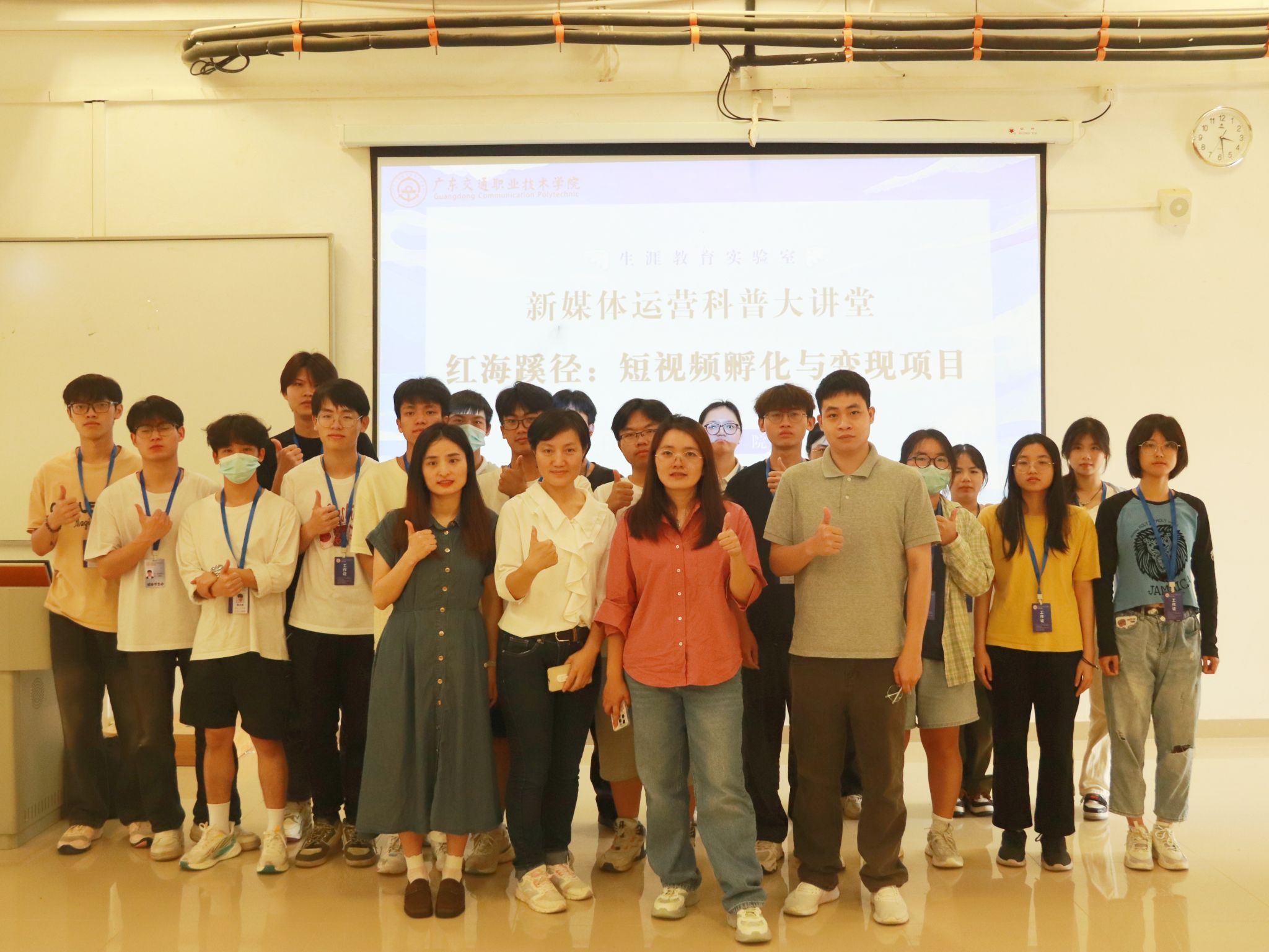 关少珊老师对参加本次活动的同学表达了美好期待与祝福。她鼓励同学们多多积累短视频运营的实战经历,储备深厚的专业基础,习得过硬的专业能力,保持对新媒体的热爱,走媒体融合之路,担当起现阶段新时代的历史使命,掌握内容策划的“生命线”,做一名“守正创新”的自媒体从业者。