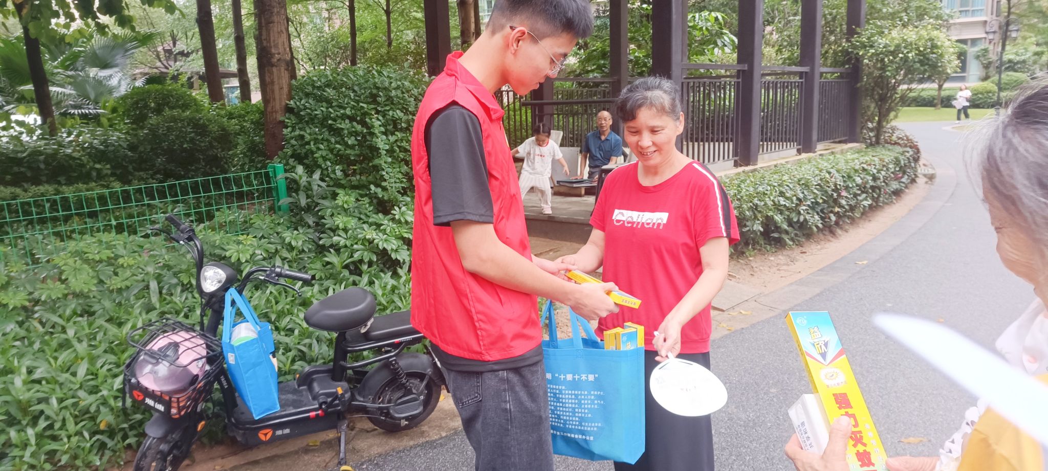 志愿者对小区内的道路、楼道等公共区域进行仔细清扫,确保小区角角落落的环境整洁卫生;同时,深入社区清扫路面和花坛里的落叶、烟头、白色垃圾等杂物,给居民分配蚊香和纸巾等,向他们普及卫生常识以及积极做卫生的重要性,倡导居民从自身做起,从身边小事做起,积极参与卫生活动。