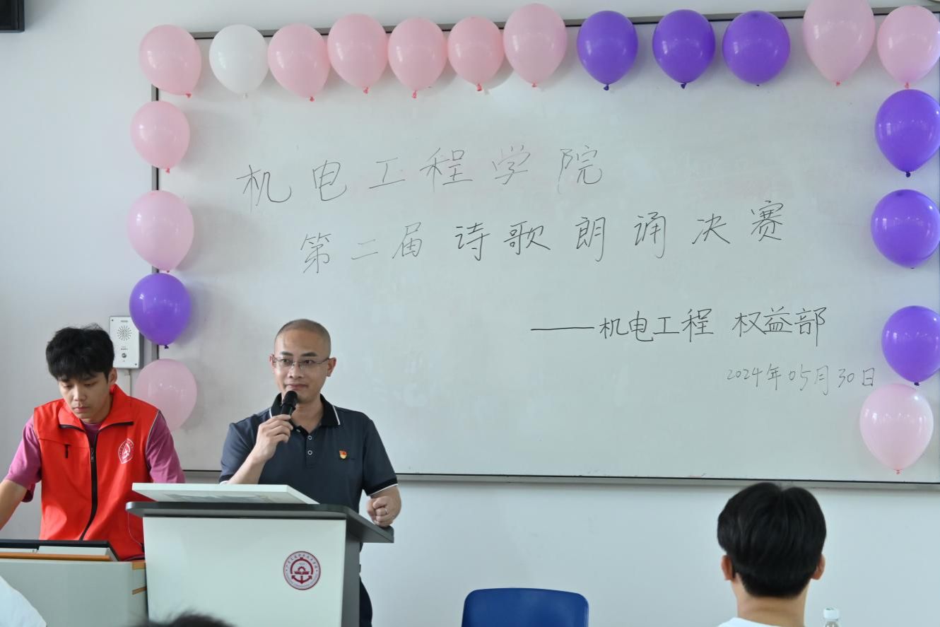 为传承弘扬中华优秀传统文化,践行社会主义核心价值观,引导青年学子牢固树立热爱党、坚信党、忠于党的信念,营造和谐融洽、健康文明的校园文化氛围,5月30日,机电工程学院成功举办以“感党恩 诵经典”为主题的第二届诗歌朗诵比赛。机电工程学院党委副书记刘元平、辅导员、学生骨干及学生代表等参与了此次活动。