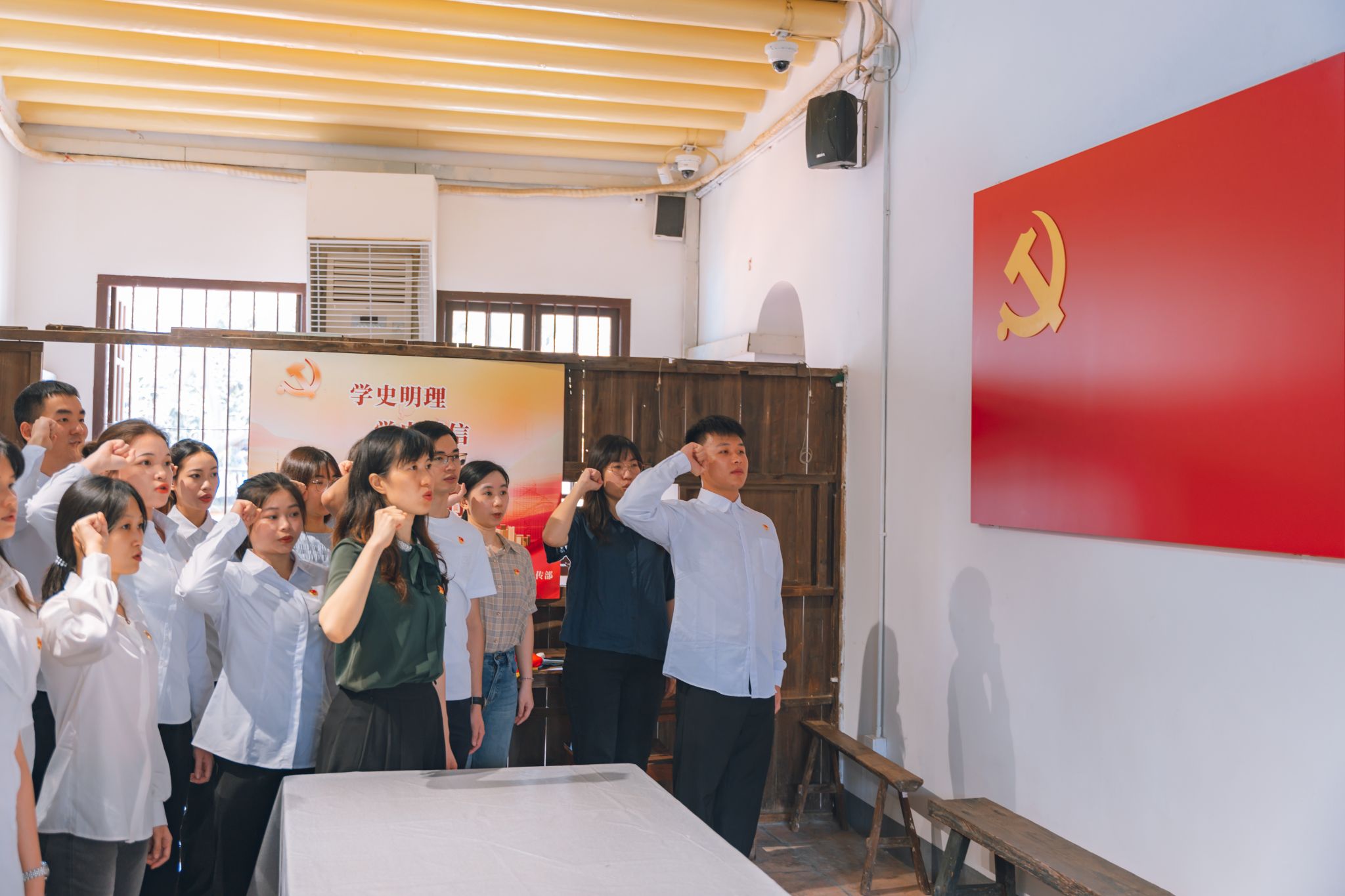 在拥有百年历史的建筑中,支部老党员为新党员佩戴党徽,20名新发展党员紧握右拳、面向党旗、庄严宣誓,支部老党员也一起重温入党誓词:“我志愿加入中国共产党,拥护党的纲领,遵守党的章程,履行党员义务……为共产主义奋斗终身,随时准备为党和人民牺牲一切,永不叛党”。铮铮誓言掷地有声,坚定表达了对党的无限忠诚热爱和为共产主义事业奋斗终身的坚定决心。