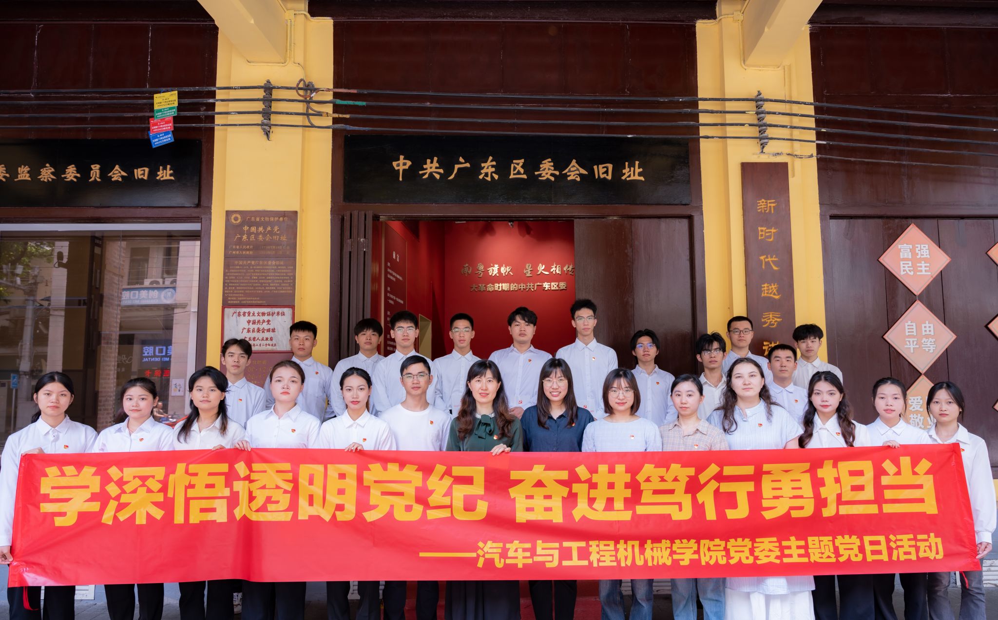 为深入推进党纪学习教育,引导党员进一步强化纪律意识、规矩意识,6月18日,汽车与工程机械学院党委组织师生党员赴中国共产党广东区委员会旧址纪念馆开展“学深悟透明党纪 奋进笃行勇担当”主题党日活动。汽车与工程机械学院党委书记陈素莲,学生一支部、学生二支部教师党员以及2024年新发展党员参加活动。