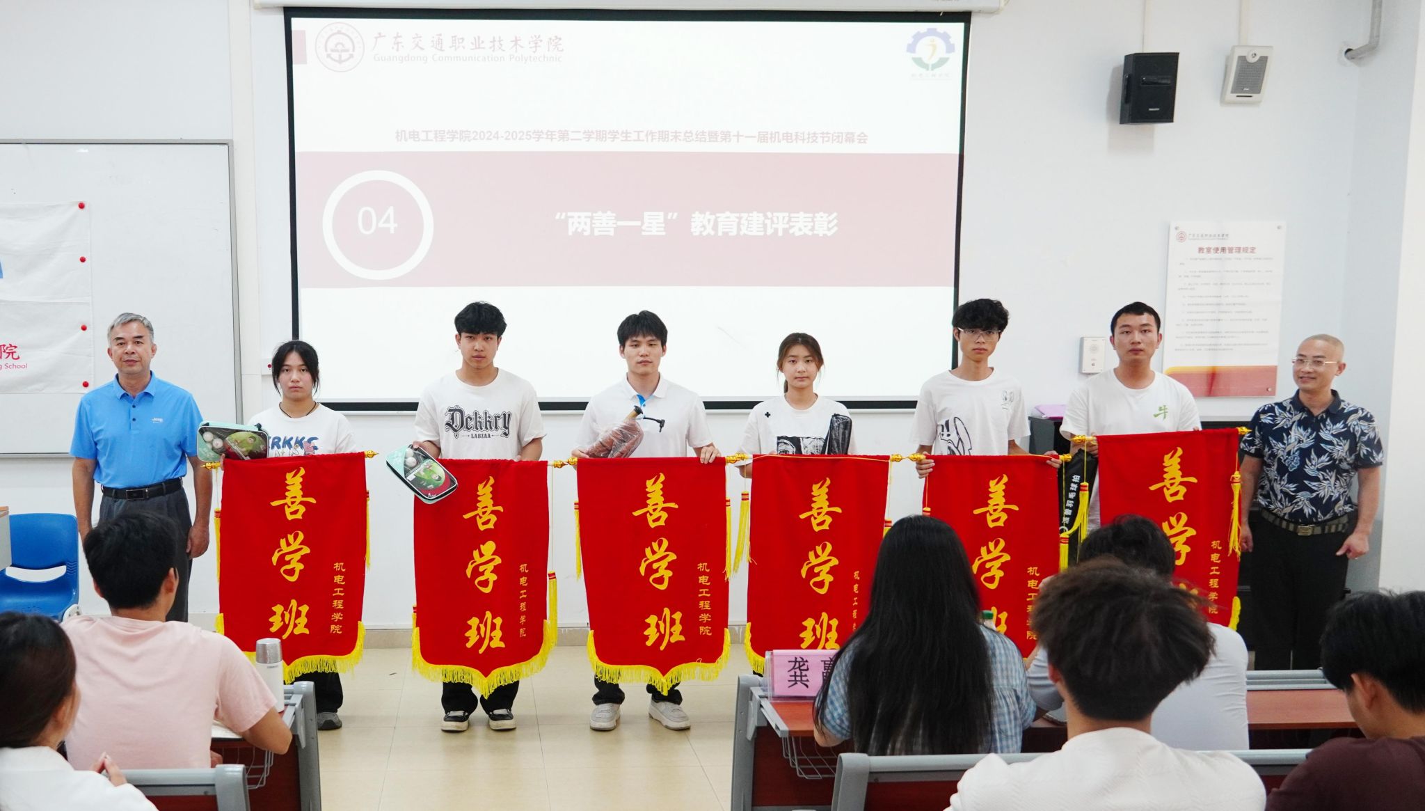 大会对机电工程学院第十一届机电科技节项目获奖代表、“青马工程”培训班优秀学员代表、“两善一星”获奖代表进行了表彰。同时,宣读了2025级新生助理班主任及心理辅导助理的候任名单。
