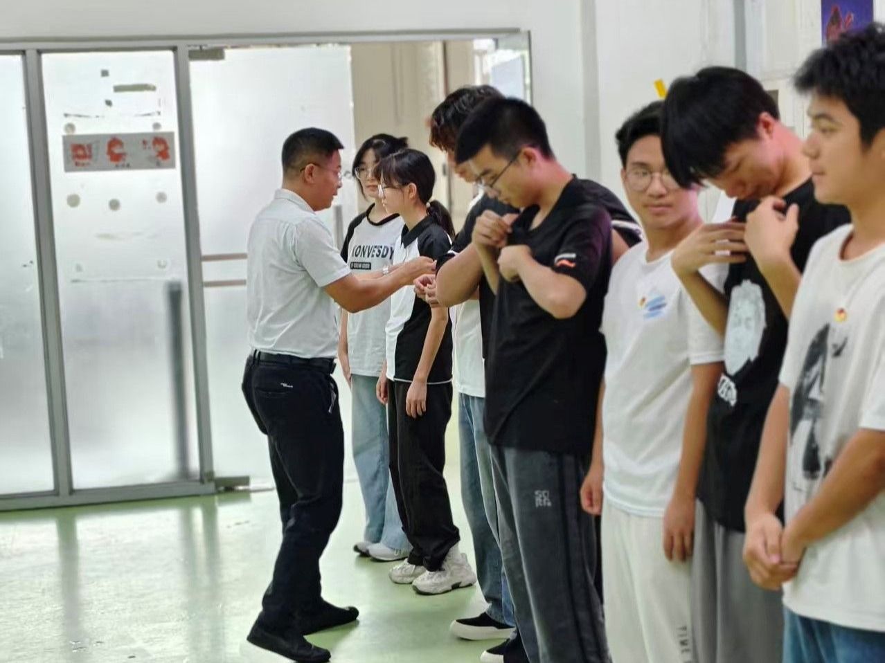 辅导员、班主任为新生团员逐一佩戴团徽。当金色的团徽别在胸前时,不少新生团员的眼中闪烁着激动的光芒。“这枚团徽不仅是一个标志,更是一份责任。” 来自汽车与工程机械学院新生团员表示,佩戴团徽的瞬间,他深刻感受到作为一名共青团员的光荣与使命,未来将以更高的标准要求自己,在军训期间、学习上与生活中发挥模范带头作用。汽车与工程机械学院通过佩戴团徽仪式,引导新生团员“亮身份”,时刻牢记共青团员的身份,在集体中主动担当,展现青年学子的良好风貌;“忆初心”,铭记入团时的誓言,坚定理想信念,将个人成长与国家发展紧密结合;“启新程”,以军训为新的起点,在大学生涯中勤学苦练、增长本领,努力成为交通领域的高素质技术技能人才,为国家交通事业发展贡献青春力量。