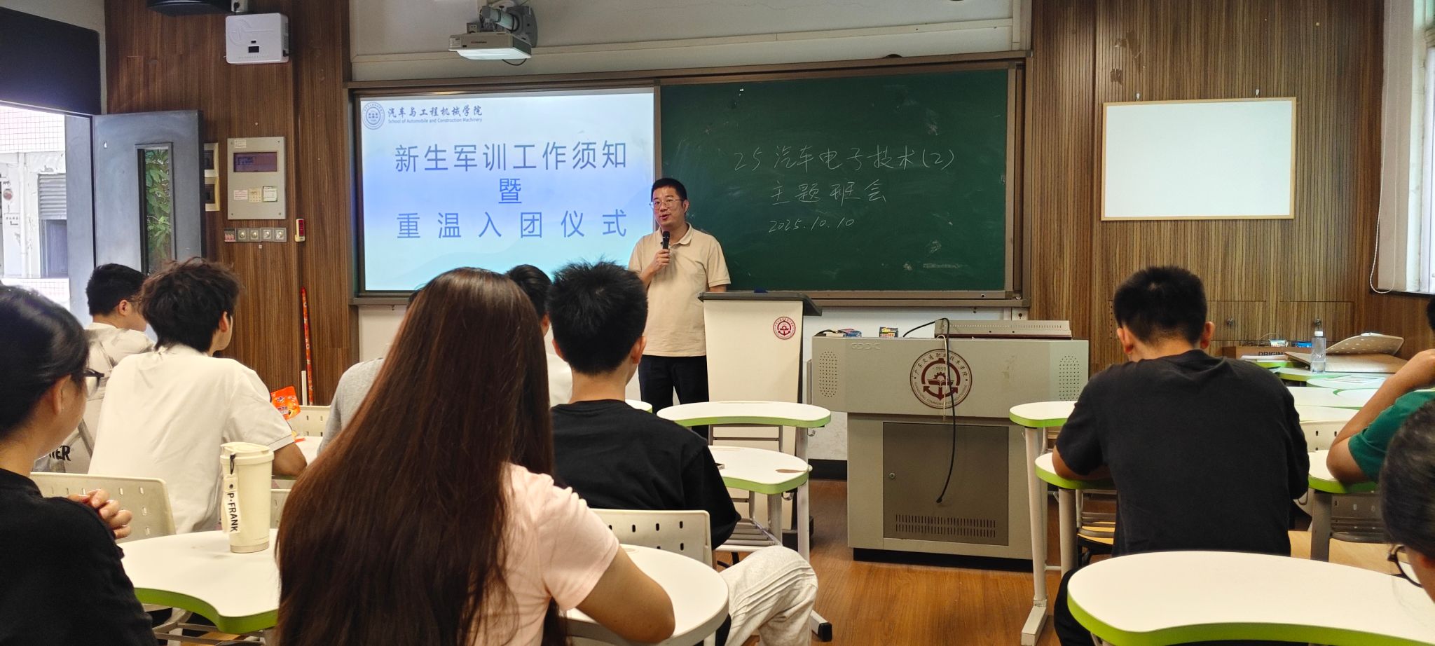 汽车与工程机械学院始终高度重视新生入学教育工作,结合“团学一体化”模式,进一步强化团员的政治性、先进性和群众性,引导团员在班级团支部日常管理和同学服务中发挥作用,树立榜样。首次在主题班会中融入重温入团仪式,是学院 “思想引领+实践育人” 工作模式的重要体现。后续,学院还将围绕军训开展系列主题教育活动,帮助新生们更快适应大学生活,树立正确的价值观与成长观,为培养担当民族复兴大任的时代新人奠定坚实基础。