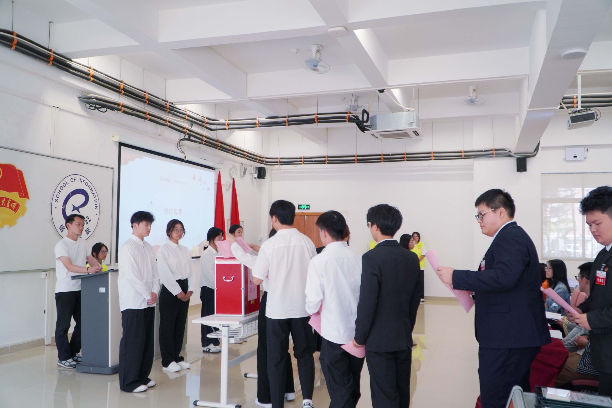 大会以无记名投票的方式,民主选举产生了信息学院第十二届学生会主席团、第十二届学生会委员会委员。