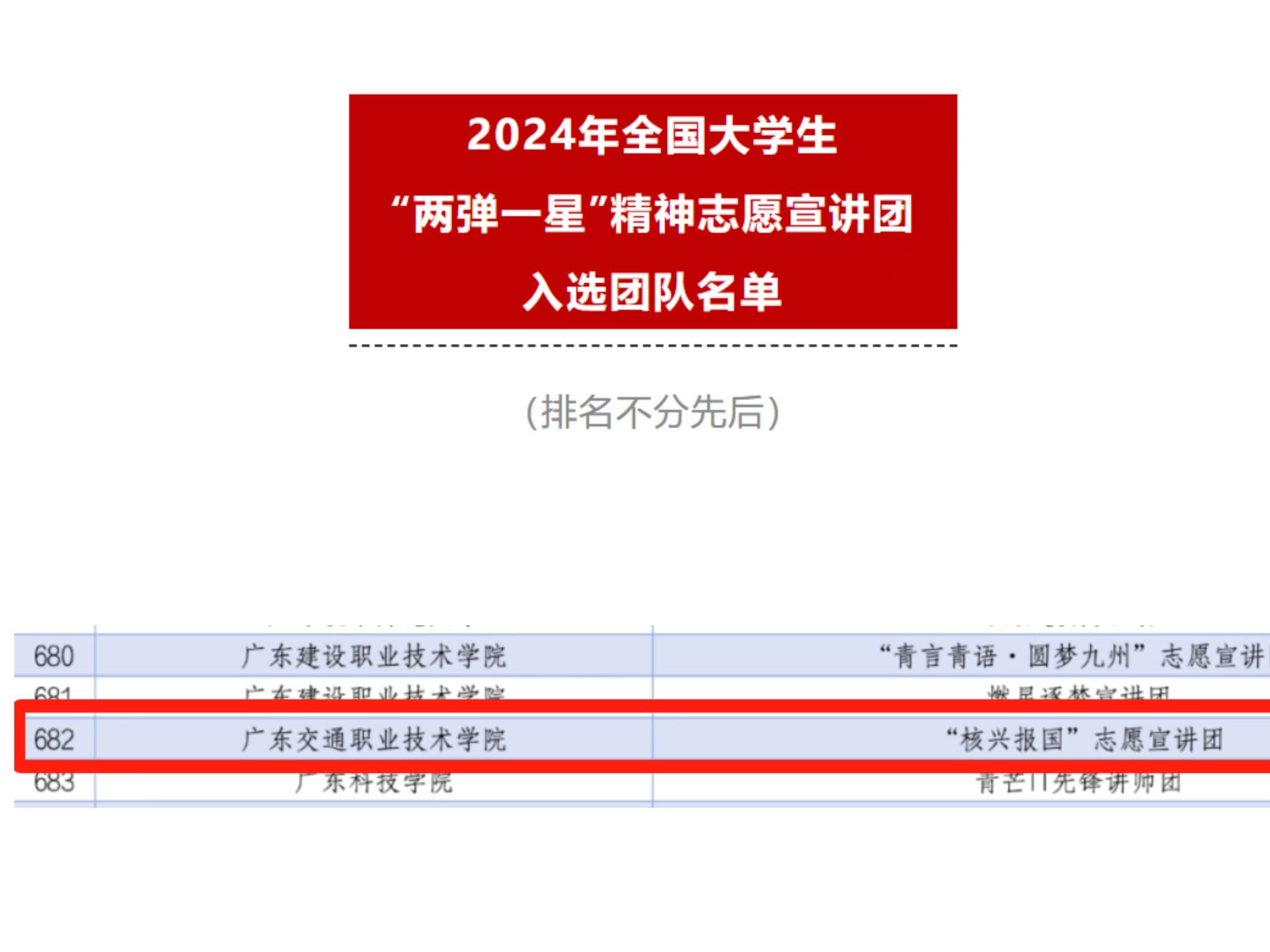 4月3日,团中央青年志愿者行动指导中心公布2024年全国大学生“两弹一星”精神志愿宣讲团入选团队名单,由马克思主义学院黄青青、周志平、单舒雅三位教师指导的“核兴报国”志愿宣讲团成功入选。