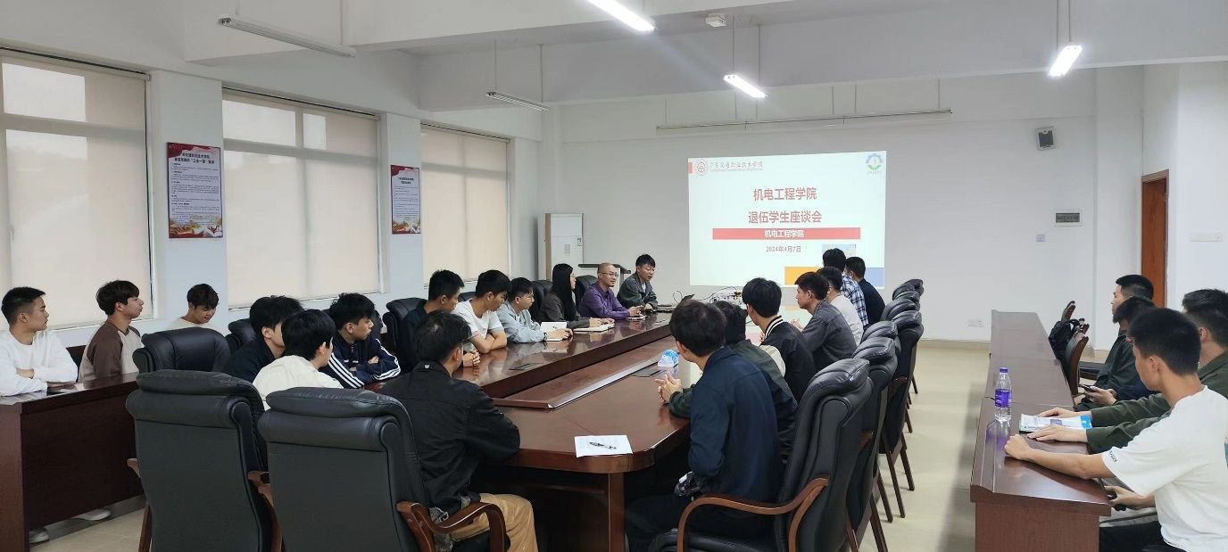 4月7日,机电工程学院在创新楼302召开退伍学生座谈会。机电工程学院党委副书记刘元平,辅导员吴军、龚赢、黄建荣,全体退伍学生等参加座谈会。座谈会由吴军主持。