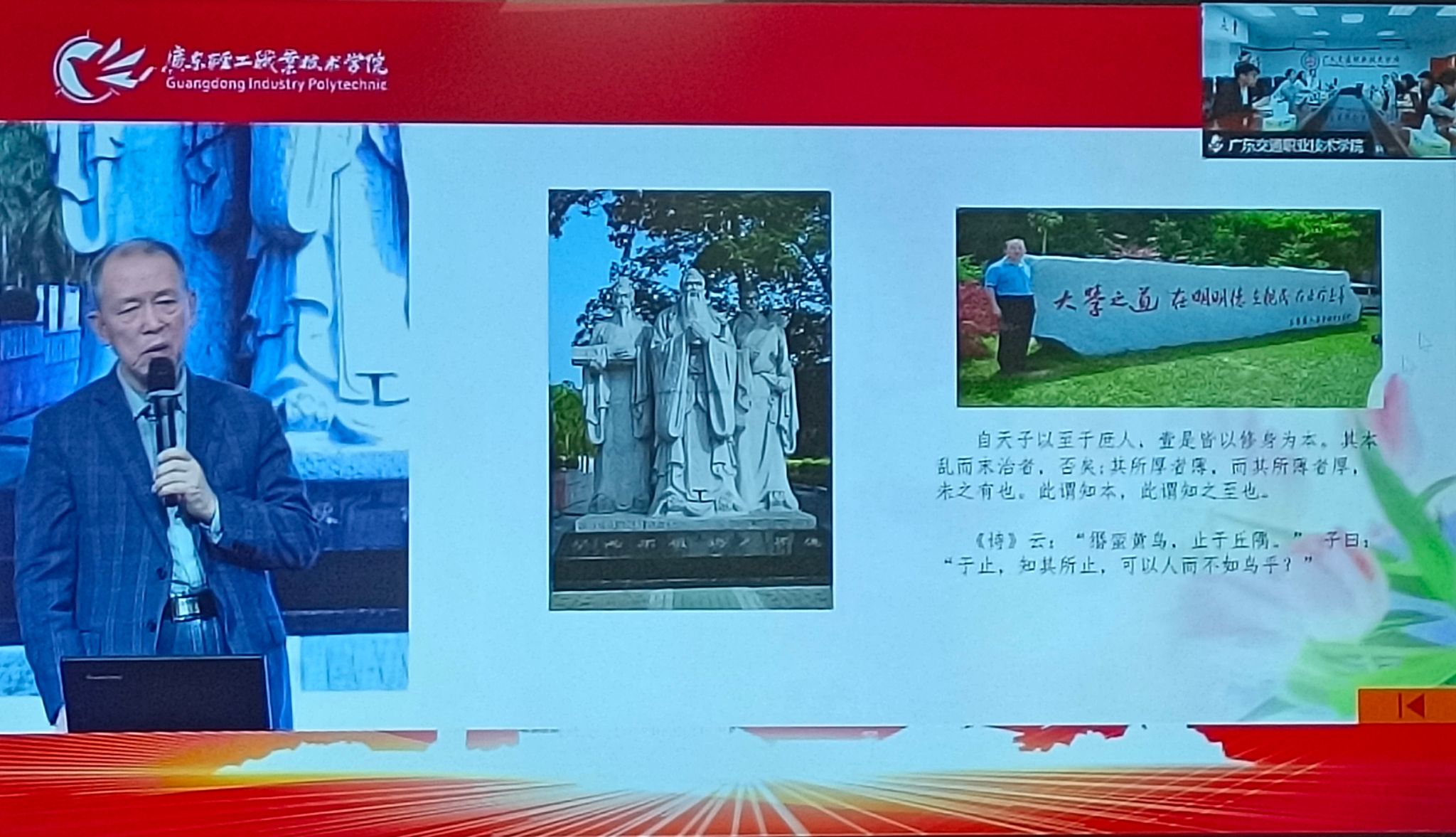 曲建武教授回顾了他5年前参加“学校思想政治理论课教师座谈会”的经历,并对思政课教师发出了“灵魂拷问”:“5年了,思政课让习近平总书记放心了吗?思政课用心教了吗?还有信心上好思政课吗?”。曲建武指出,思政课教师应该不断加强思想政治理论学习,提高政治理论素养,潜心教书育人,淡泊名利,捧着一颗心来,不带半根草去,“多讲人生,而不是讲本能”,脚踏实地,勤勉奋发。结合四十余年育人经历,曲建武还分享自己了从事教育事业的所思所想、所感所悟,勉励广大教师积极弘扬和践行教育家精神,树立“躬耕教坛、强国有我”的志向和抱负,不断提高自身的政治素养和专业能力,自觉增强立德树人、教书育人的荣誉感和使命感;珍惜和学生在一起的每一寸光阴,帮助青年学生“扣好人生第一粒扣子”,争做有信仰、有情怀的老师,实践有责任、有温度的教育,为强国建设、民族复兴伟业作出新的更大贡献。
