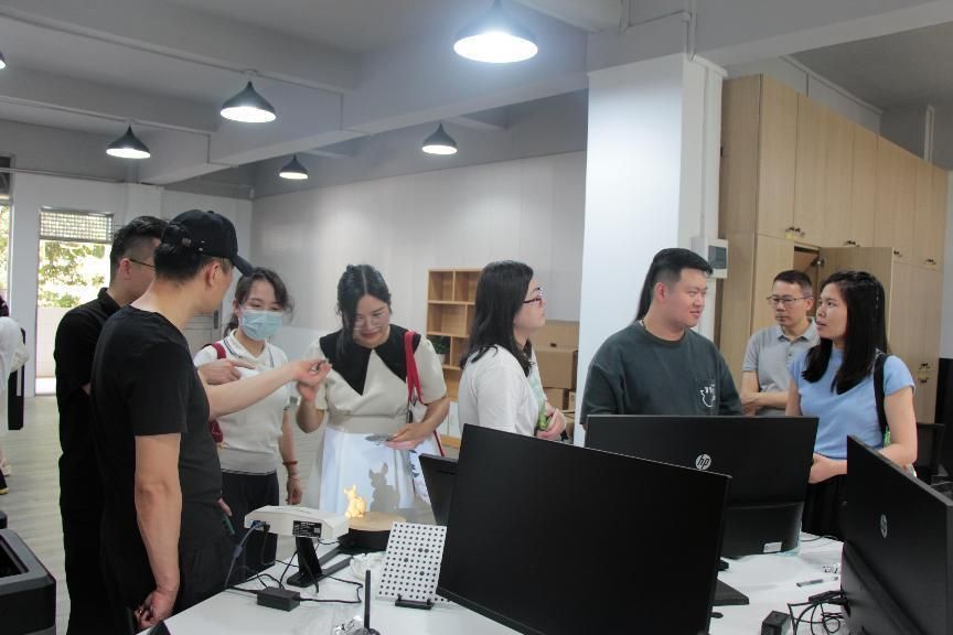 活动现场,实训室负责人介绍了实训室的建设背景、目标定位、功能布局及主要设备配置。该实训室融合了设计、制造、检测三大功能,配备了先进的数字化设计软件、高精度加工设备及智能化管理系统,能够满足从产品设计到样品制作的全流程产品设计教学需求。