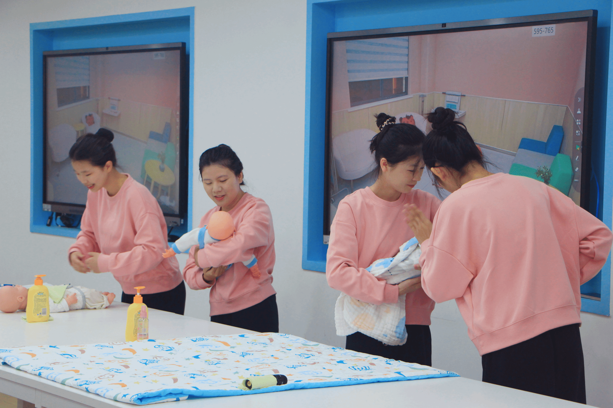 早期教育专业的“暖阳萌护队”成员许彤桐、石宇玲、林志红和陈伊文,在吴珊琦、徐婉钰、梁亭玉三位老师的带领下,以“医养教融合”为理念,通过婴幼儿喂养照护、中式抚触操、意外伤害急救以及亲子游戏活动的展示,全方位展示了学生们在婴幼儿照护领域的专业技能和创新精神。特别是石宇玲同学现场演示的1岁以内婴幼儿热性惊厥急救护理,将现场气氛推向了高潮,凸显了照护者在紧急情况下的应变能力和专业素养。