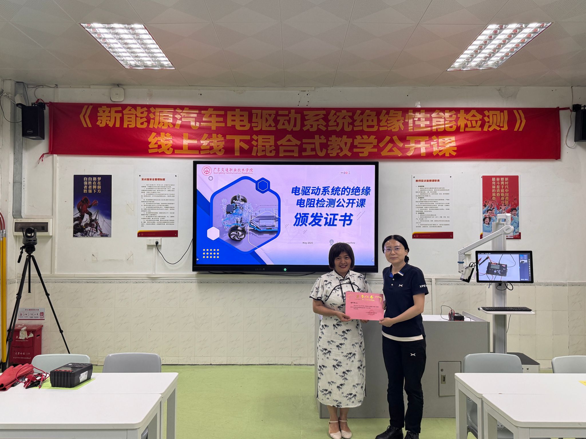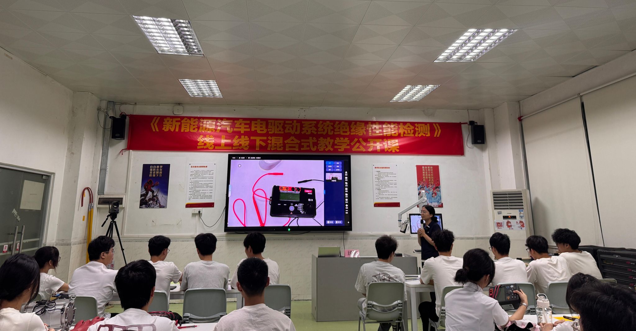 公开课线下授课对象为2023级新能源汽车技术专业学生,线上授课对象为马来西亚SLC汽车工艺学院的国际留学生。公开课主讲人蒋翠翠围绕“新能源汽车电驱动系统绝缘性能检测”主题开展了线上线下示范性教学。课程以学生为中心,项目化教学贯穿始终,充分体现课前准备、课中实施与课后拓展的完整教学闭环,教学设计新颖,教学手段先进,内容紧贴新能源汽车产业需求、引入行业最新国家标准,赢得与会人员高度评价。