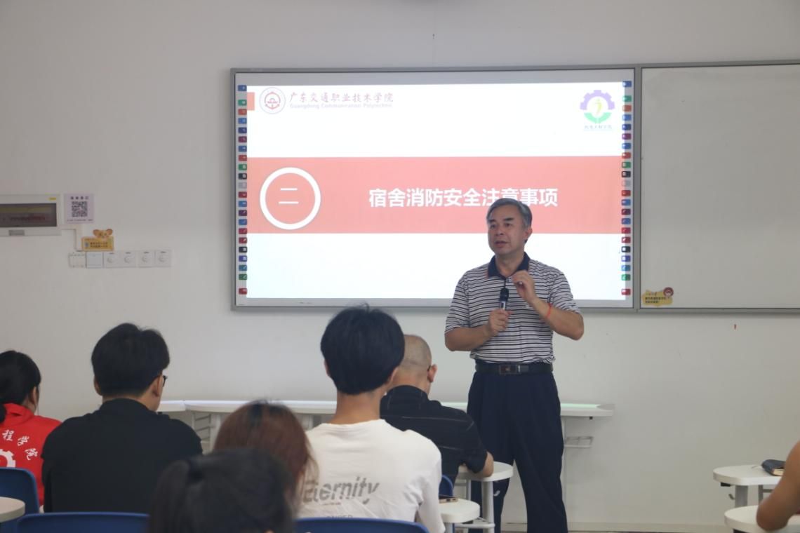 刘元平强调本次消防演习的安全要点,希望同学们能通过此次活动提升消防安全意识,加强处理消防紧急情况的能力。实训室副主任谭华旭结合实训室安全规范,详细讲解了实训室上课的安全注意事项和安全须知。学院辅导员利志伟则针对日常宿舍管理及消防安全等方面,特别强调了宿舍的用电的安全问题。