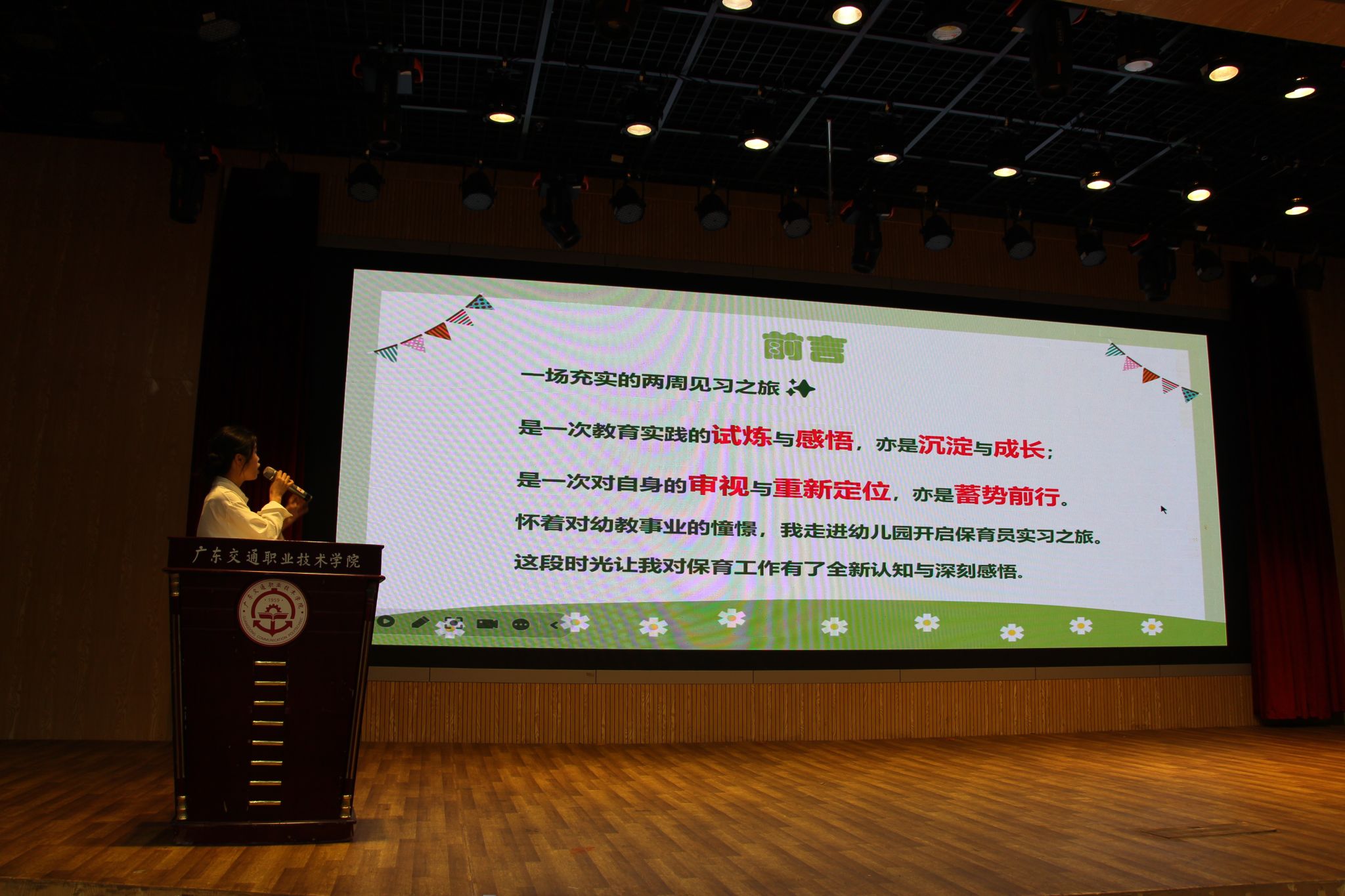 六所园区实习生代表依次上台作实习总结汇报,他们结合实习期间的所见所闻、所得所思,精心制作图文资料和视频素材,通过多媒体展示、案例分享等形式,全面展现了为期两周的幼儿教育实践成果。