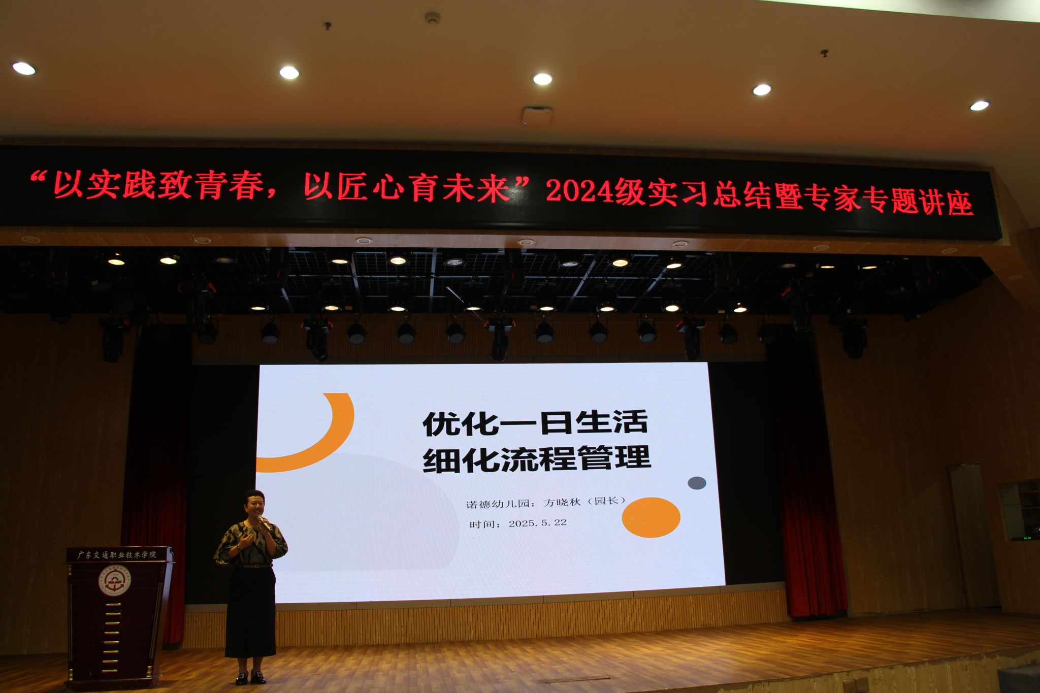 为深化产教融合、提升实践育人成效,5月22日下午,教育与艺术学院召开“以实践致青春,以匠心育未来”2024级教育实习总结暨专家专题讲座。教育与艺术学院院长罗罕淑等班子成员,专业教师、企业嘉宾及2024级早期教育专业、婴幼儿托育服务与管理专业、学前教育专业全体学生齐聚一堂,共同回顾为期两周的教育实习成果,总结实践经验,共同探讨幼教人才培养新途径。