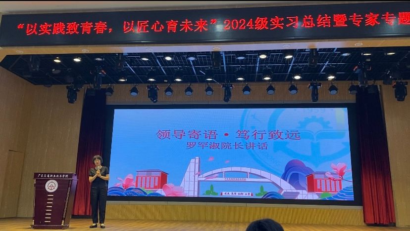 罗罕淑提出两点希望:一是希望同学们能将此次实习积累的宝贵经验融入到日常的专业学习过程中,树立将理论学习与实践相结合的理念,不断提升专业能力和综合能力,更好地适应职业发展的需求;二是希望同学们做一个懂得感恩的人,感恩父母含辛茹苦的养育,感恩老师春风化雨的教导,感恩同伴并肩前行的支持,更要感恩时代赋予成长的机会,愿同学们将这份恩情化作爱的力量,回馈社会。