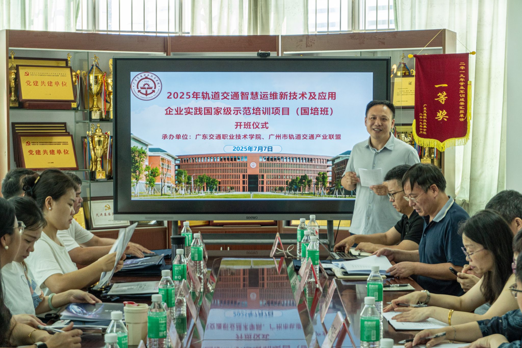 7月7日上午,2025年广东省职业院校教师素质提高计划“轨道交通智慧运维新技术及应用企业实践”培训班(国培)在我院举办。该培训班由我院与广州市轨道交通产业联盟(以下简称“联盟”)联合承办。学院继续教育学院代表方汉泉,轨道交通学院院长黎新华,联盟副秘书长周吉以及来自全省各地的10余所高职院校共30名老师参加本次开班仪式,仪式由轨道交通学院副院长宋以华主持。