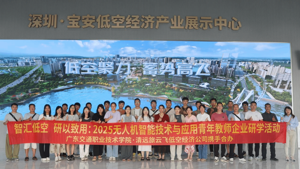 为积极响应国家低空经济发展战略,深化产教融合,提升青年教师在无人机领域的专业技术素养与实践能力,智慧交通工程学院主办的2025年“低空经济驱动下无人机智能技术与应用青年教师企业实践(国培班)”于近日组织青年教师学员赴深圳、佛山、广州三地开展企业研学与岗位实践活动。此次研学通过实地走访行业标杆企业,系统学习、实践低空经济产业链、无人机核心技术及创新应用场景,为推动低空经济领域人才培养与技术创新注入新动能。