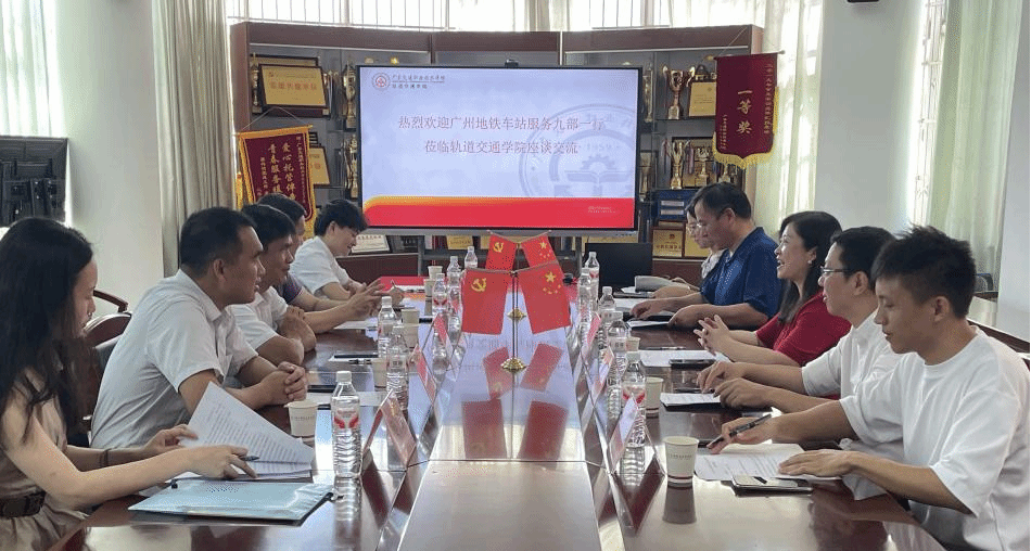 9月18日上午,广州地铁车站服务九部党委书记陈晓声一行莅临轨道交通学院开展交流座谈。轨道交通学院党委书记肖星、院长黎新华、党委副书记李少伟等人热情接待。双方重点探讨了第十五届全运会期间的地铁志愿者服务项目推进进展,并就人才培养、毕业生就业动态、专业技能证书评定等方面进行了深入交流。