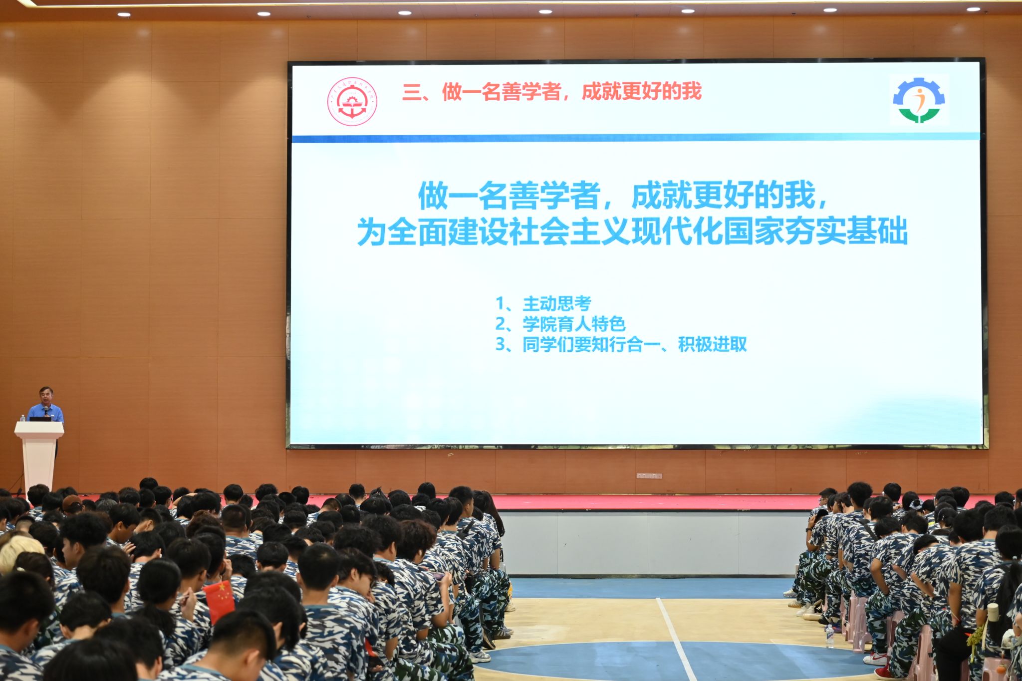 江能兴对2025级新生的到来表示热烈欢迎,以《学以成人》为主题,教导同学们要养成主动思考、投入学院育人实践、知行合一、积极进取的好行为习惯。课中从发展历程、师资队伍、“两善一星”教育实践等优秀育人项目、优秀学长和校友、合作企业等方面介绍了机电工程学院相关情况,启发同学们要学做人、学思考、学本领。他强调同学们要爱党爱国,志存高远,做一名勇担时代责任新青年;务本求真,孜孜不倦,做一名善学者成就更好的我;知行合一,脚踏实地,做一名广交院精神的行动者。