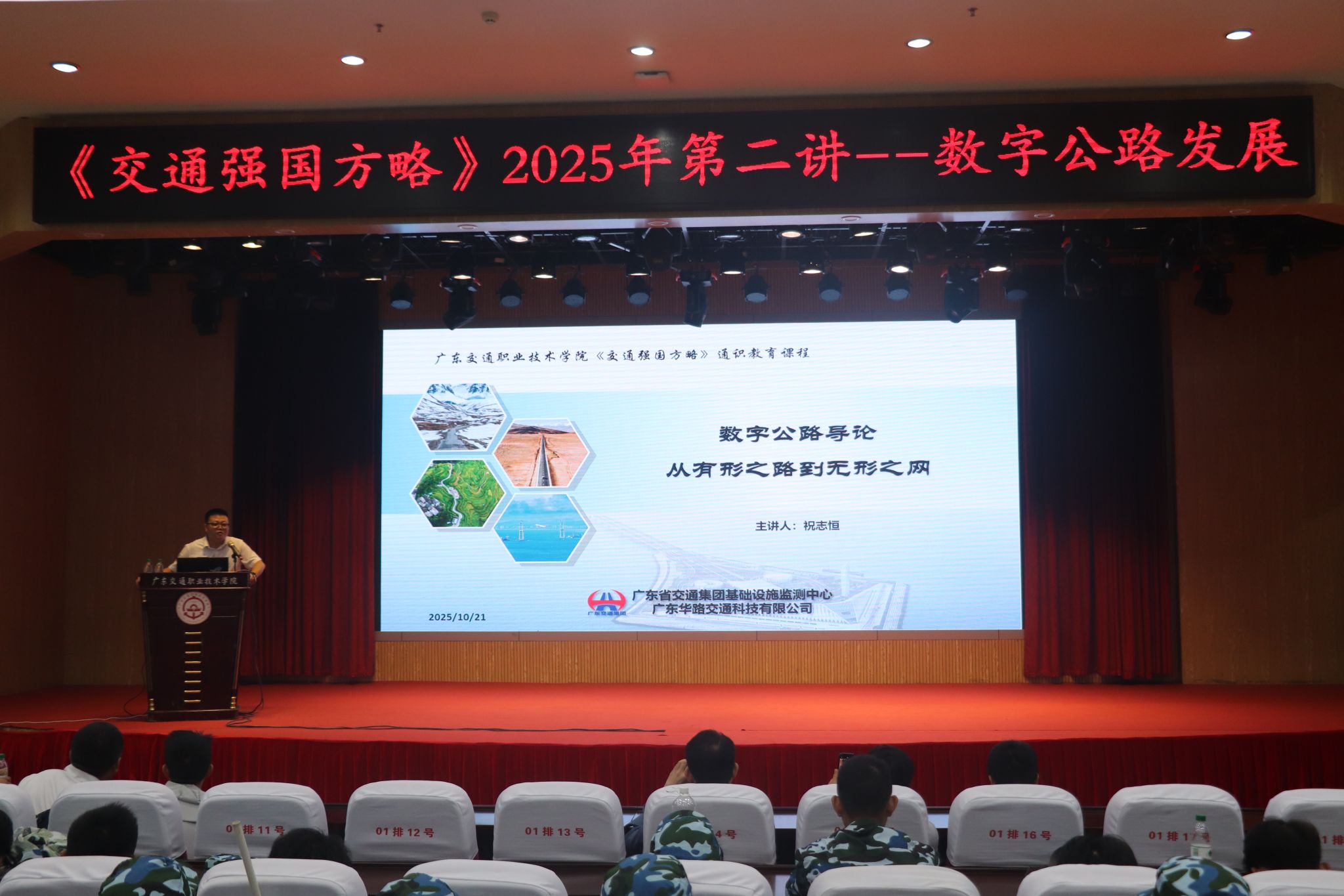 10月21日,《交通强国方略》通识教育系列课程第二讲在学院天河校区学术报告厅开讲。本次讲座以“数字公路发展——从有形路到无形网”为题,特邀广东华路交通科技有限公司路桥正高级工程师、全国创新创业优秀博士后、软件设计师、中南大学兼职博士生导师、交通运输部在役干线公路数字化工作专班成员祝志恒老师主讲。广东华路交通科技有限公司数智化研究所产业部经理曾小军、土木工程学院院长徐凯燕、副院长蒋英礼,教师代表以及全体2025级新生分别通过线下及线上直播的方式同步参与,共同开启一场关于数字交通的知识盛宴。