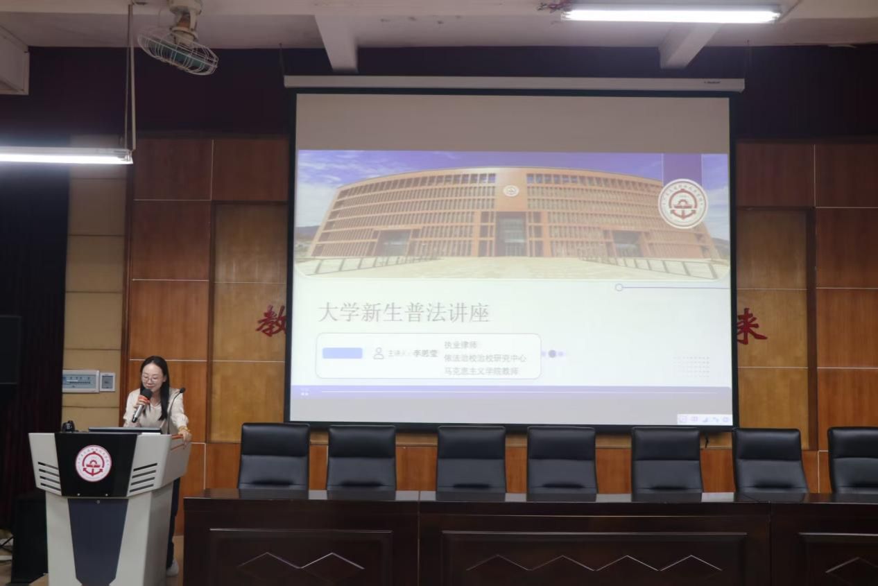 为切实增强我院学生的法治观念和风险防范意识,10月21日,教育与艺术学院在学术报告厅成功举办“大学生法治意识与风险防范”专题讲座。本次讲座由依法治校研究中心工作人员、马克思主义学院教师李思莹主讲,2025级新生及辅导员参加。
