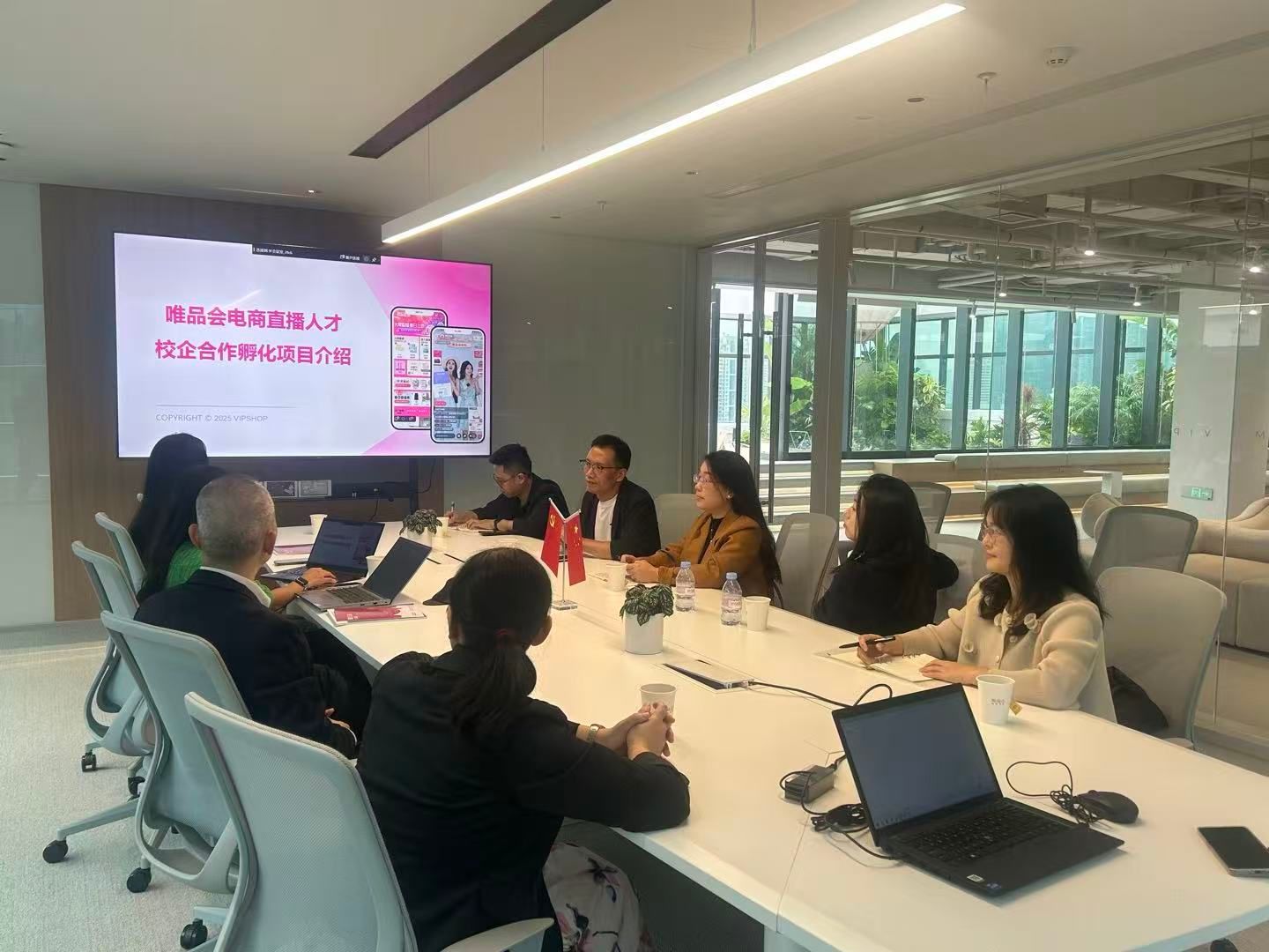 为深入贯彻落实教育部“访企拓岗促就业”专项行动精神,深化产教融合、推进校企协同育人,10月28日,运输与经济管理学院副院长蔡善文、电子商务专业带头人吴雪毅以及骨干教师等一行,赴唯品会(中国)有限公司开展专题调研交流。双方围绕学生实习就业项目优化、岗位资源拓展和校企深度融合等关键议题展开探讨,旨在以精准合作为抓手,拓宽学生就业渠道,搭建高质量就业新平台。