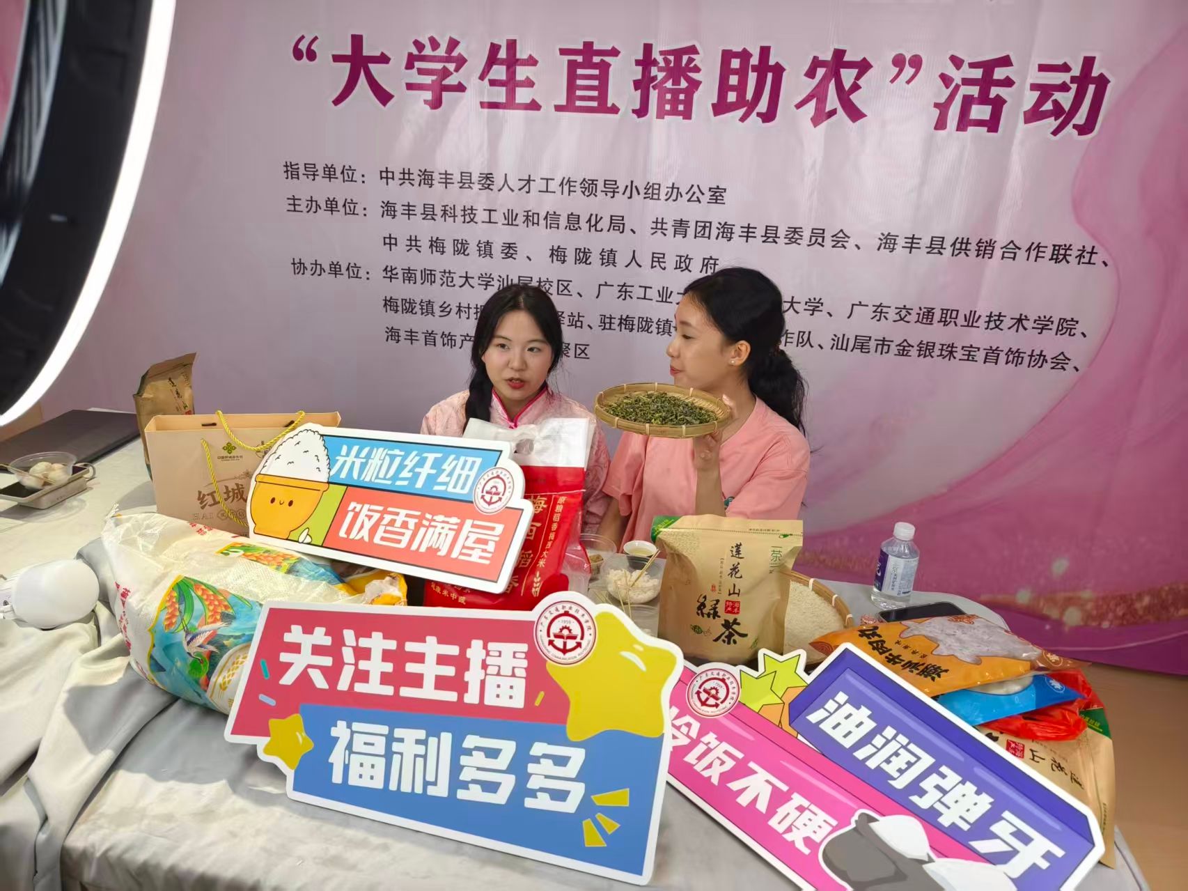 为深入学习贯彻党的二十大和二十届四中全会精神,落实广东省“百千万工程”推动城乡区域协调发展的部署,11月1日,运输与经济管理学院电子商务专业团队赴海丰食品谷综合服务中心开展“大学生直播助农”专题活动。活动联合海丰县供销合作联社,精准对接梅陇镇农特产品企业,两支团队在九十分钟的同步直播中取得了近千元销售额的佳绩,助力农特产品拓宽网络销售渠道,为深入推进“双百行动”和服务乡村振兴战略交出了一份亮眼答卷。