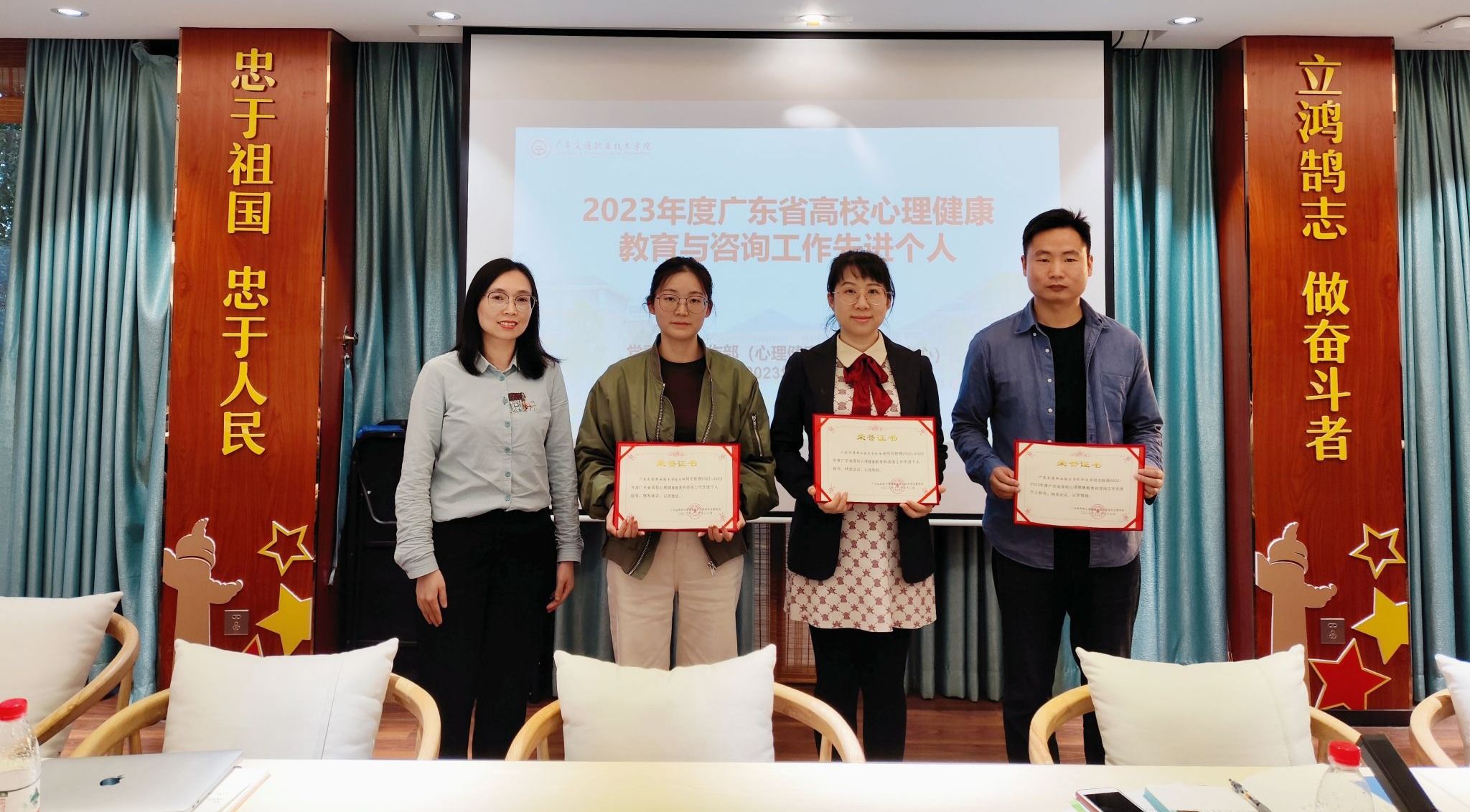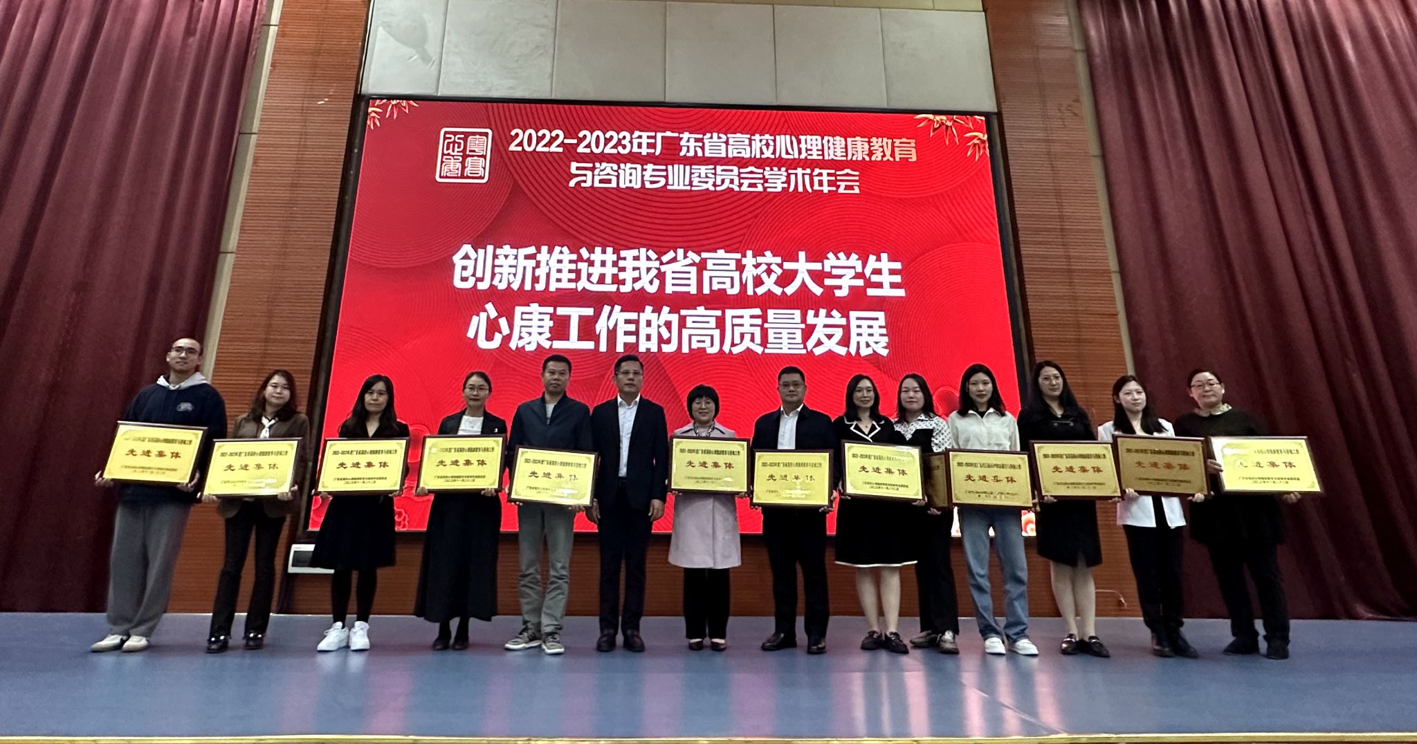 我院心理健康教育与咨询中心(以下简称“心理中心”)获评“2022-2023年度广东省高校心理健康教育与咨询工作先进集体”,这是我院第五次获此殊荣。同时,心理中心主任黄婷红获“广东省高校心理健康教育和咨询优秀中心主任”称号;心理中心专兼职教师李惠红、李仲夏、方远华、吕阳与杨颖获得“广东省高校心理健康教育工作10年敬业奖”与“2022-2023年度广东省高校心理健康教育和咨询先进个人”称号。