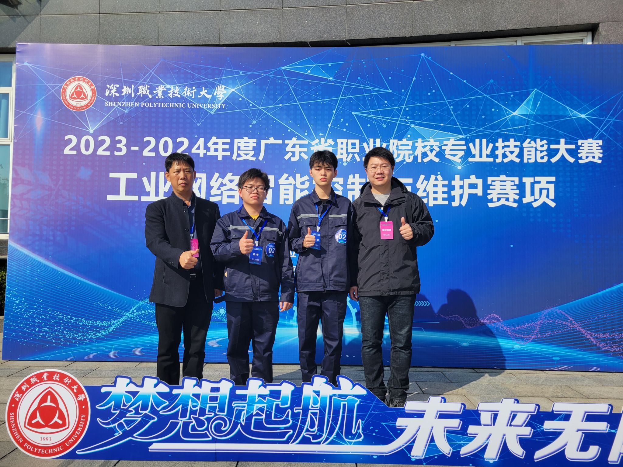 近日,由广东省教育厅主办、深圳职业技术大学承办的2023-2024年度广东省职业院校专业技能大赛“工业网络智能控制与维护”赛项顺利落下帷幕。本次比赛共有来自省内的45支代表队参赛。经过为期2天的激烈角逐,我院机电工程学院周名侦、翟振坤老师指导的学生团队罗宝仁、蔡骏煌,以总分第二名的佳绩勇夺一等奖。这是继2023年后蝉联该赛事的一等奖,为再次冲击该赛项的国赛创造了良好开局。