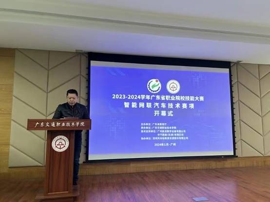 王劲松在开幕式中致辞并代表学院向参加开幕式的各位嘉宾表示热烈欢迎和诚挚问候。他表示,智能网联汽车技术是汽车发展的新方向,通过竞赛集中展示各职业院校智能网联汽车技术相关的实践教学探索成果,同时进一步分享和推广专业建设和人才培养经验,促进大湾区汽车智能技术的应用发展和企业人才需求充分对接。王劲松鼓励各参赛选手赛出水平、赛出风格,以精湛的技能和优异的成绩践行劳模精神、劳动精神、工匠精神,他预祝选手取得好成绩,预祝大赛取得圆满成功!