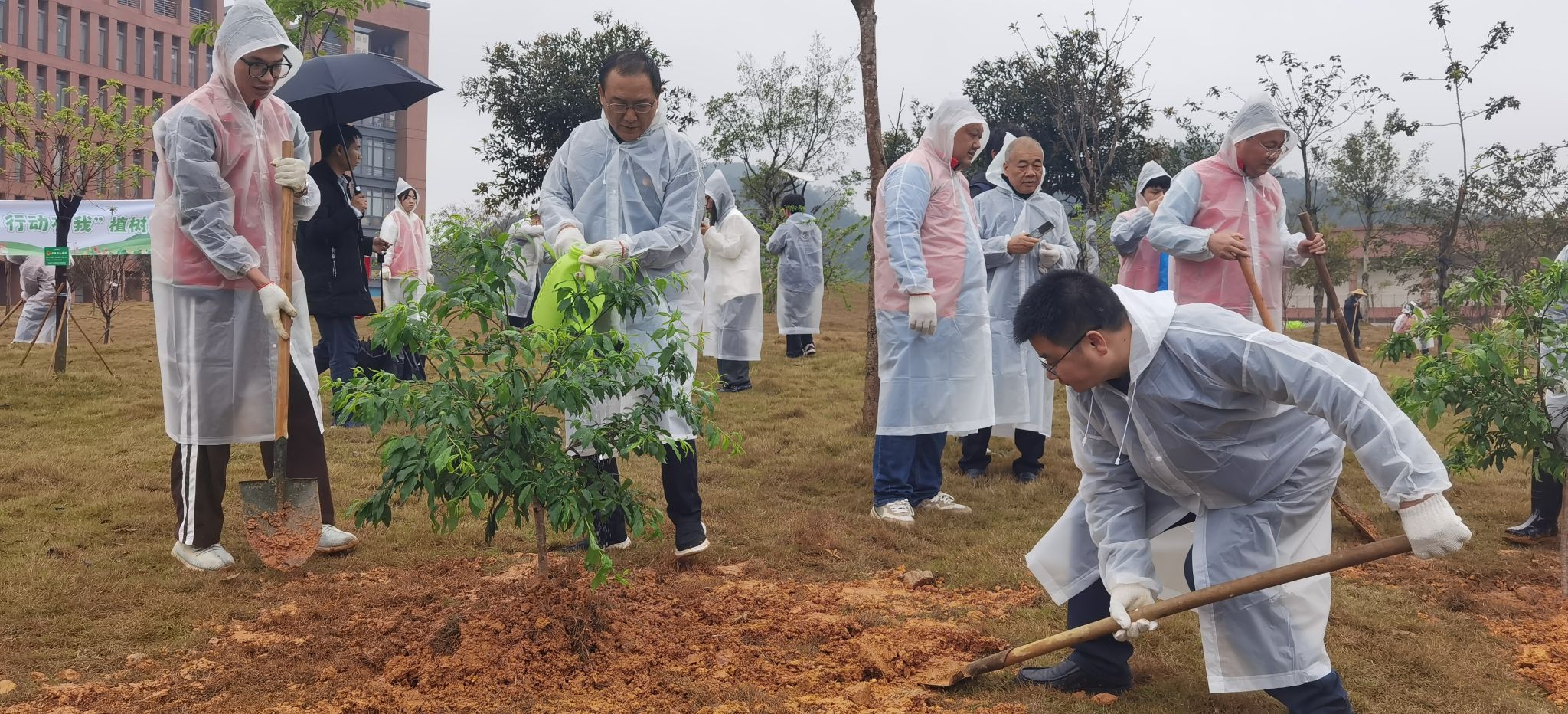 3月14日,学院在清远校区青年林举行“绿美广东 行动有我”植树活动,学院党委副书记、院长罗毅,党委副书记、纪委书记蔡艺,党委副书记廖金宝,清远社科联主席李贤成、职教城(清远)事务中心主任段习文一行,学院党委学生工作部、团委、二级学院有关负责人和教师代表,学生志愿者参加了本次植树活动,共同为校园添上一抹新绿。