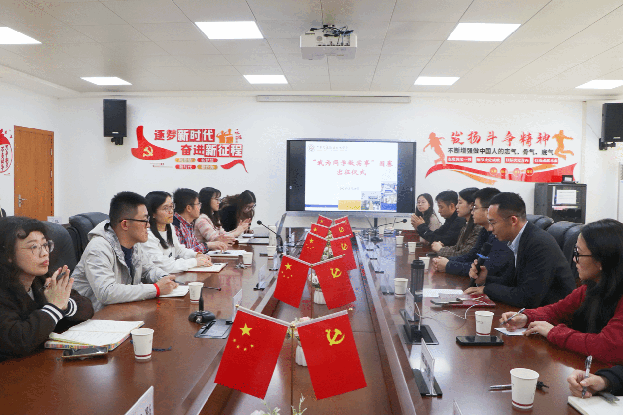 为强化学生工作优秀品牌项目的引领示范作用,激发我院团学工作人员干事创业热情,3月20日,学院在清远校区明德楼305会议室举行全国高校学生会组织“我为同学做实事”项目交流展示活动出征仪式。学院党委副书记廖金宝,团委书记王铿崎、副书记刘一苇,信息学院党委书记陈秀君、副书记陈振宇、全体辅导员和参赛学生代表参加出征仪式。出征仪式由王铿崎主持。
