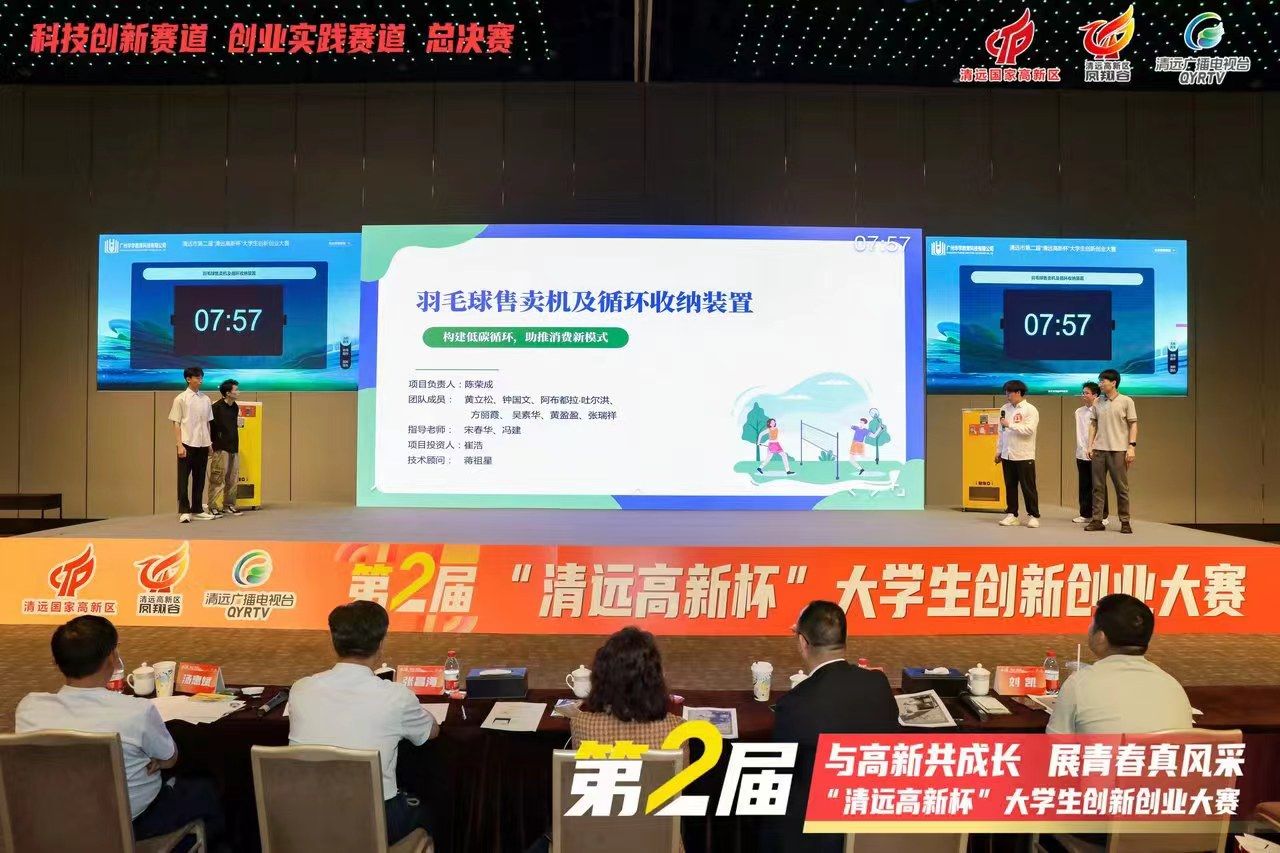近日,在第二届“清远高新杯”大学生创新创业大赛总决赛中,我院“羽毛球售卖机及循环收纳装置”项目团队展示了扎实的科技创新成果、应用实效和社会责任,获得评委和观众的一致好评,荣获一等奖。