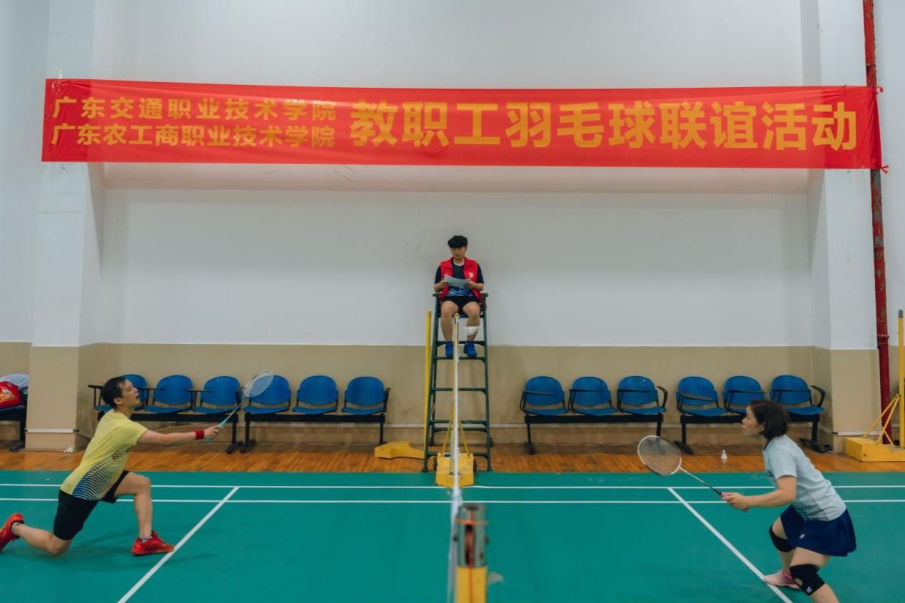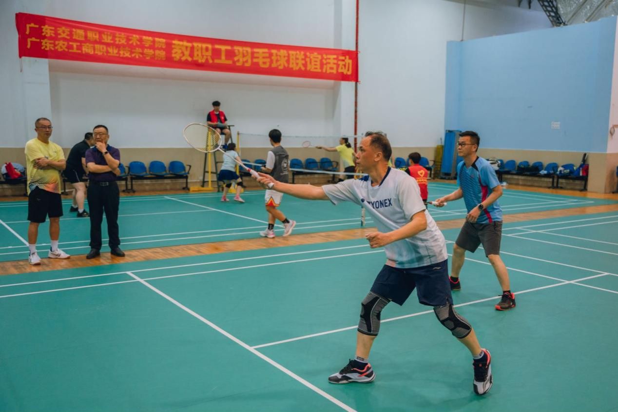 4月15日下午,广东农工商职业技术学院教职工羽毛球队到我院交流,双方在我院天河校区体育馆二楼开展了教职工羽毛球联谊活动。学院党委委员、副院长、工会主席熊嘉逸,广东农工商职业技术学院党委委员、副院长张凯等领导以及两校教职工羽毛球俱乐部和羽毛球队的部分教职工代表参加了本次交流活动。