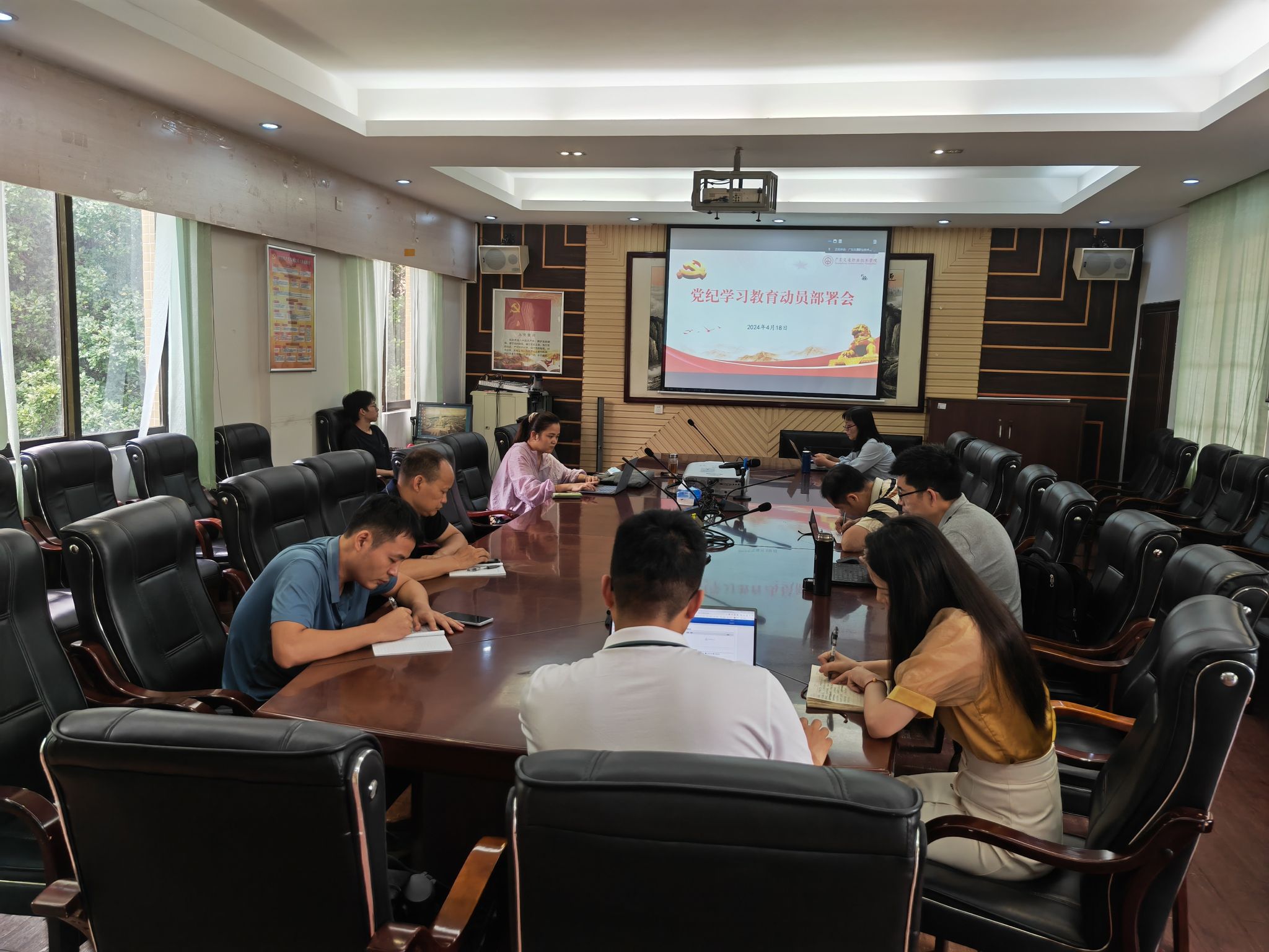 4月18日下午,学院召开党纪学习教育动员部署会。学院党委副书记、院长罗毅作动员部署讲话,深入学习贯彻习近平总书记关于党纪学习教育的重要讲话和重要指示精神以及党中央、省委、省委教育工委有关部署要求,传达学习2024年全省教育系统和学院全面从严治党工作会议精神,对学院党纪学习教育工作进行动员部署。学院党委副书记、纪委书记蔡艺主持会议。