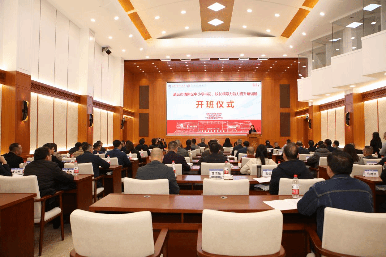 为深入贯彻落实《广东省人民政府关于印发广东省推动基础教育高质量发展行动方案的通知》文件精神,进一步推进全口径全方位融入式帮扶工作,不断提升中小学校管理者的综合能力和管理水平,助力清新区基础教育高质量发展,广东交通职业技术学院联合清新区教育局、广东外语外贸大学举办中小学书记、校长领导力能力提升培训班,1月13日,培训班开班仪式在广东外语外贸大学顺利举行。学院副院长熊嘉逸一行参加了本次开班仪式。