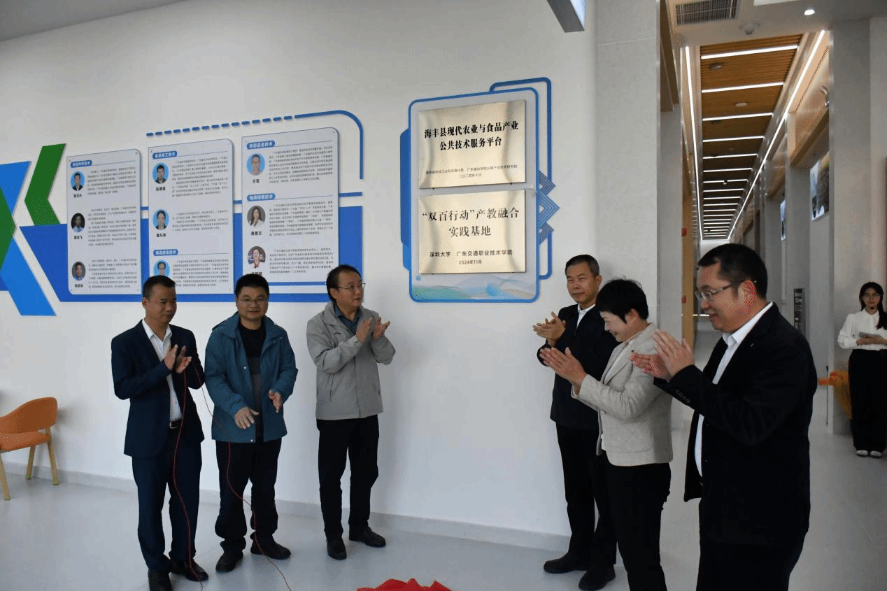 在海丰县调研期间,调研组一行先后到海丰县食品谷调研农业产业帮扶情况,深入了解学院派驻可塘镇、附城镇的省级农村科技特派员开展科技服务情况,并为“双百行动”产教融合实践基地揭牌,到海丰县可塘珠宝市场设计培训中心调研珠宝玉石产业从业人员培训情况,还参观联安镇的鹭影禾香乡村振兴示范带,学习深圳市龙岗区对口帮扶该镇发展红色文化教育、田园农旅产业和生态湿地旅游业的先进经验。