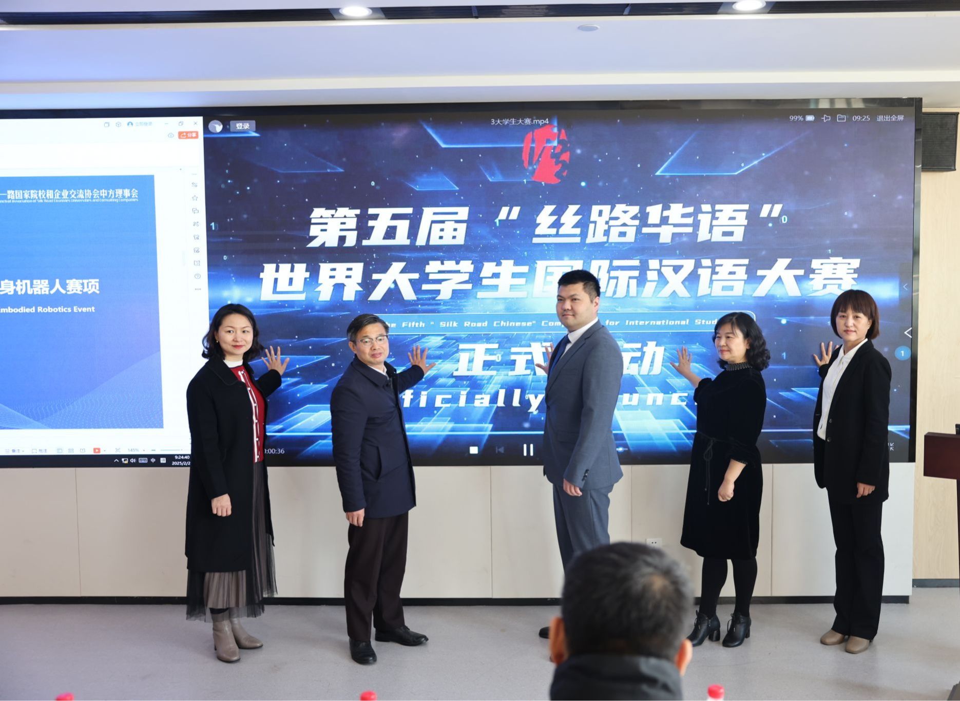作为2025年第五届“丝路华语”世界大学生国际汉语大赛的主办方代表,熊嘉逸副院长受邀与哈萨克斯坦参赞、主办方领导等共同启动赛事,此举标志着大赛正式进入筹备阶段。熊嘉逸表示,学院将充分发挥办学优势,以赛事为载体,推动汉语国际教育与职业教育深度融合,为“一带一路”文化交流与人才培养注入新动能。