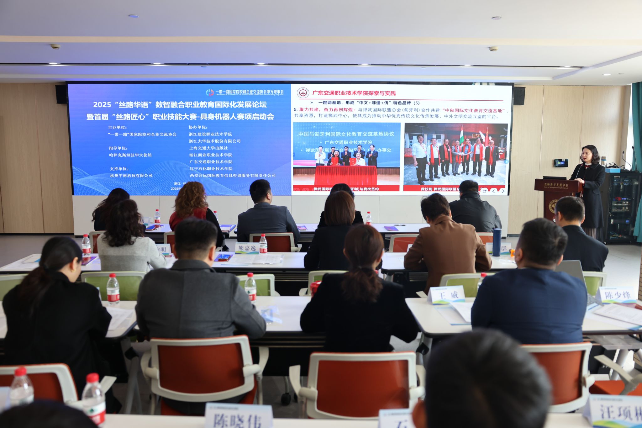 为深化职业教育国际化合作,推动数智技术与产业融合发展,2月27日至3月1日,由哈萨克斯坦驻华大使馆、“一带一路”国家院校和企业交流协会等联合主办的2025“丝路华语”数智融合职业教育国际化发展论坛暨第五届“丝路华语”世界大学生国际汉语大赛、国际汉语教学职业能力大赛及首届“丝路匠心”职业技能大赛-具身机器人大赛启动会在浙江建设职业技术学院举行,学院副院长熊嘉逸、港澳台和国际交流合作处处长齐群、继续教育学院院长陈少烽出席活动。