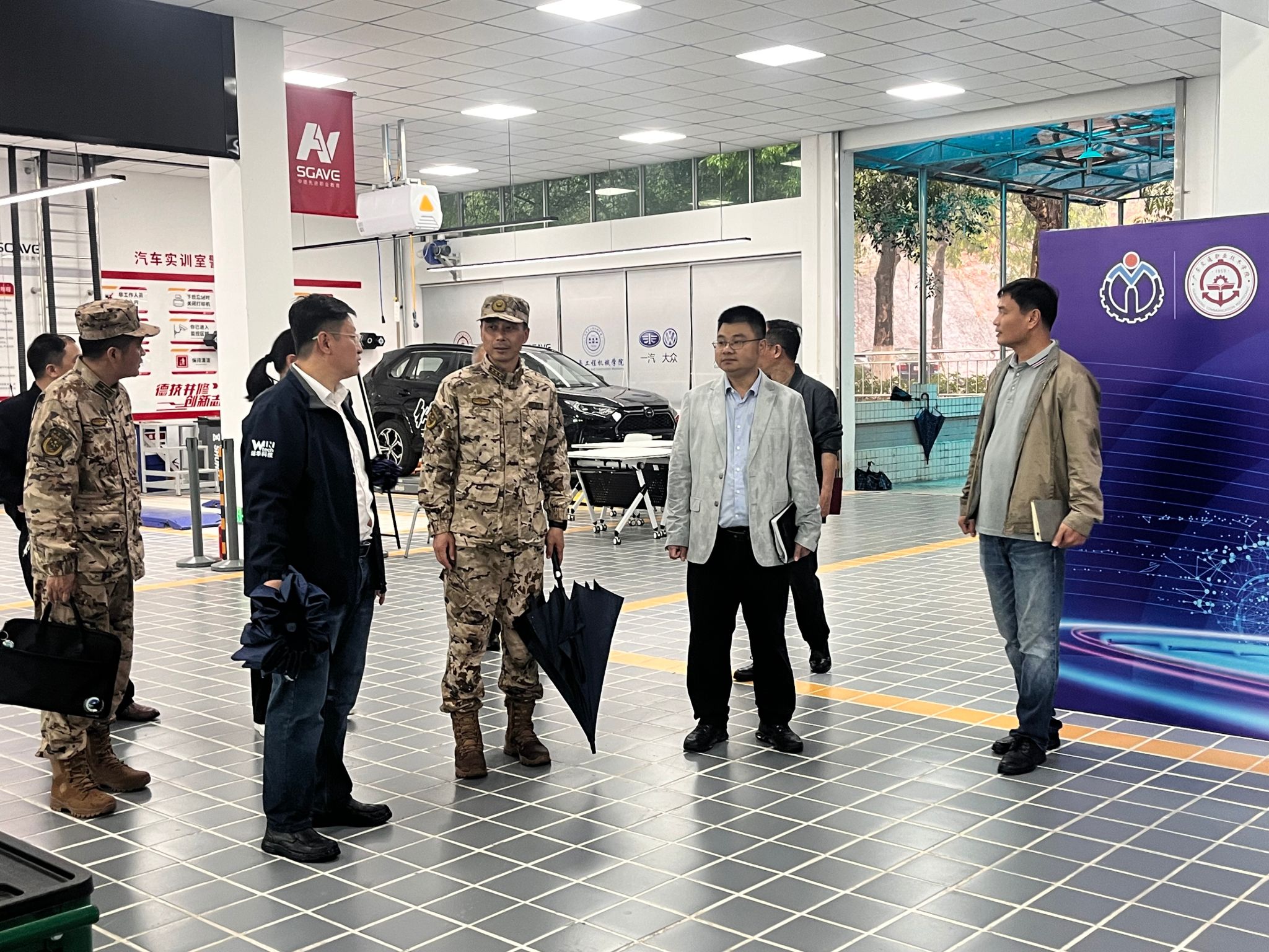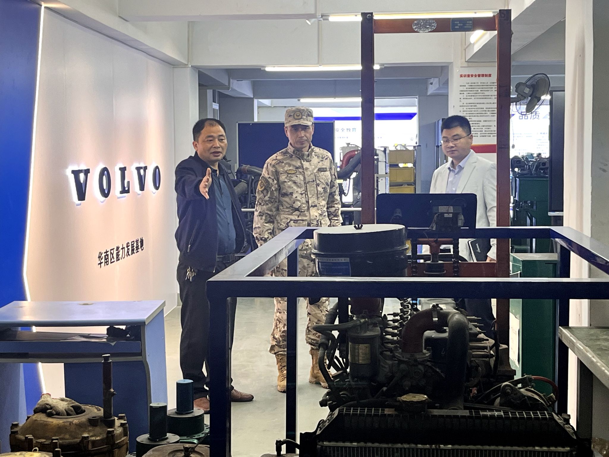随后,汽车与工程机械学院院长郭海龙、工程机械专业负责人蒋波分别介绍了学院及专业的特色与成就,双方就师资力量、技能培养、专业发展质量等方面进行了深入的探讨。在实训基地参观走访过程中,王勇上校一行实地查看了学院的实践教学环境和先进设备并给予了高度评价,对学院在实践教学方面的投入和成效表示赞赏。他表示,此次调研交流不仅加深了对学院及专业的了解,也为双方未来的合作提供了更多思路和可能。