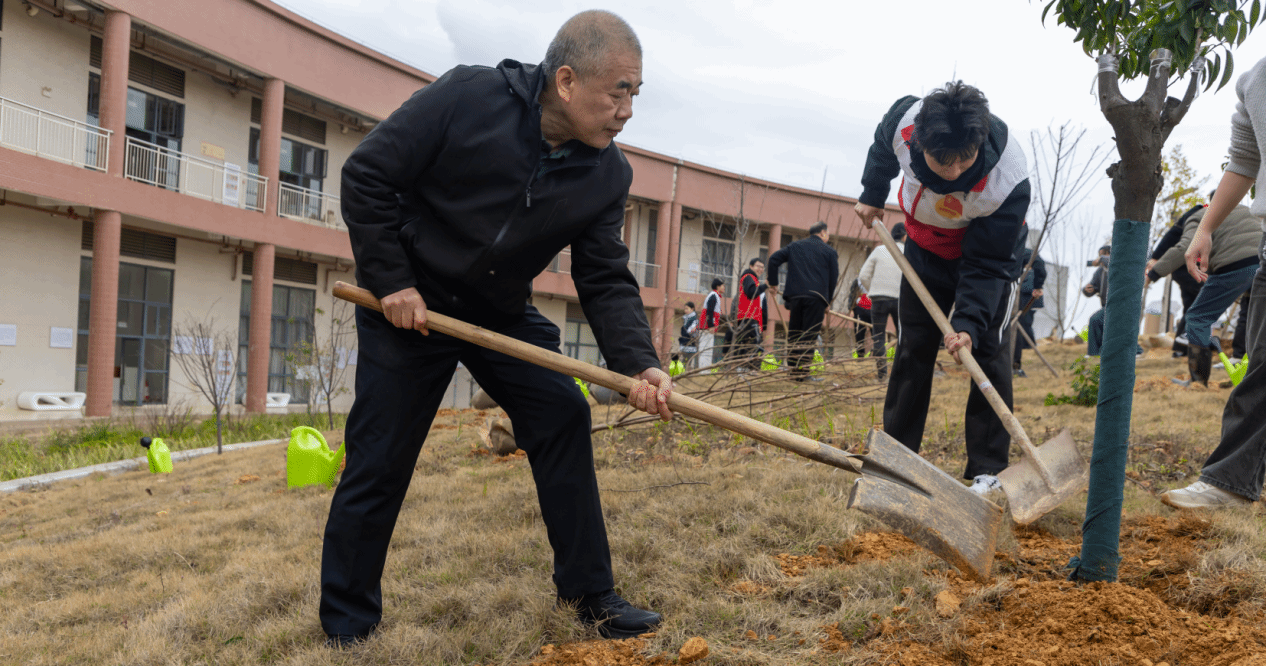活动中师生们携手植下桃树与李树苗木共30棵,为校园春色添上了一抹清新绿意与勃勃生机,象征学院在高质量发展道路上人才辈出、桃李芬芳。