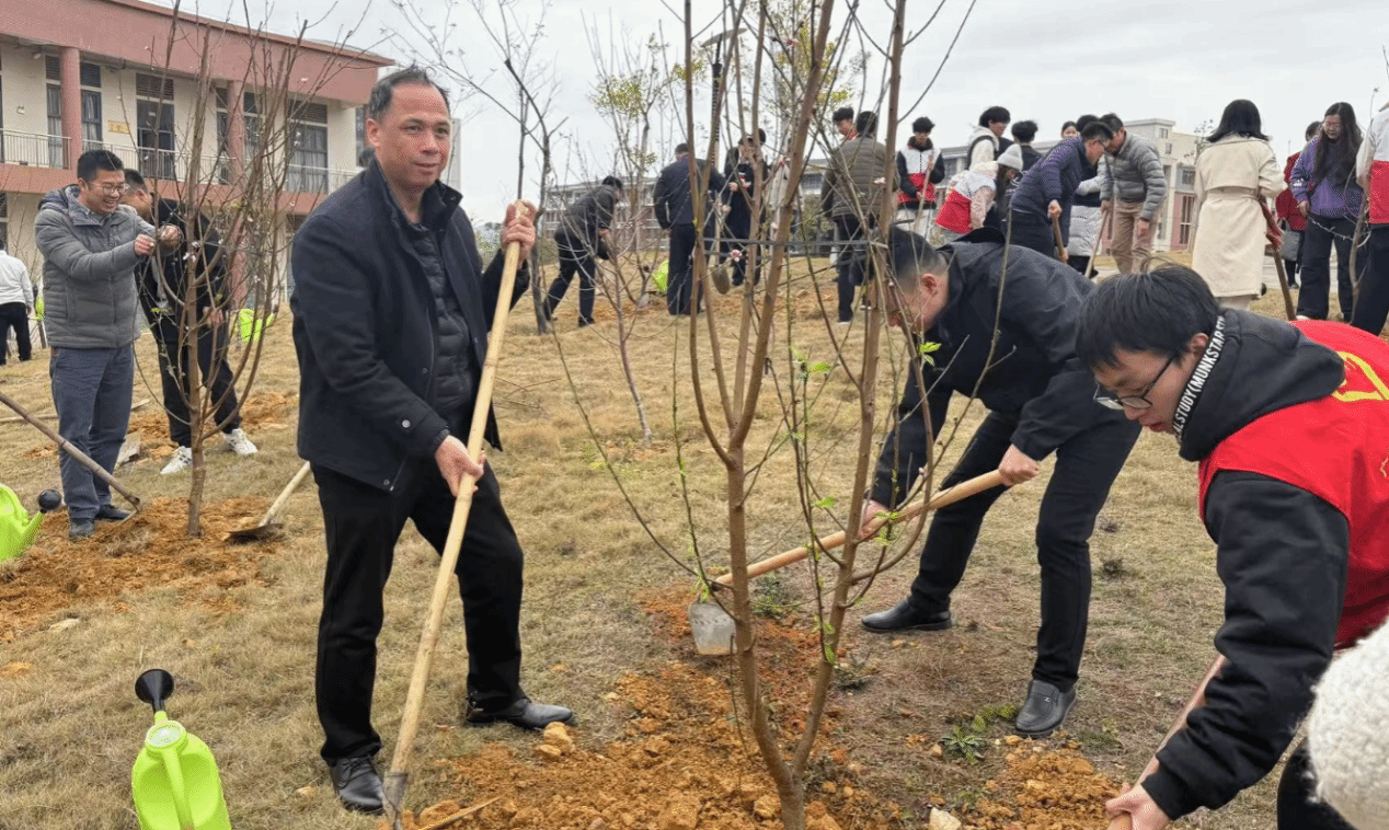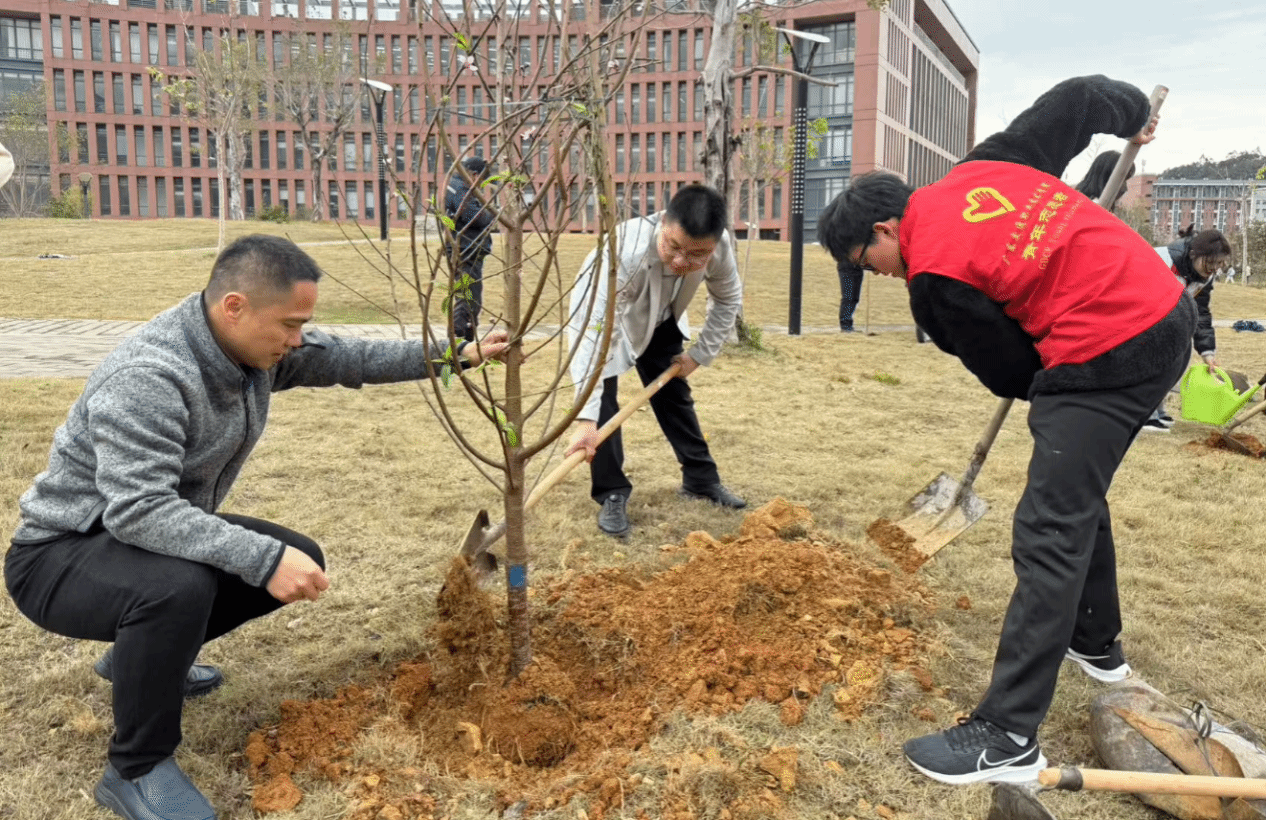 3月6日下午,学院在清远校区举办“绿美广东 青年先行”2025年广交青年共植青年林暨志愿服务一条街系列活动。学院党委副书记廖金宝,党委学生工作部、团委、二级学院负责人和教师代表,学生志愿者参加本次活动。
