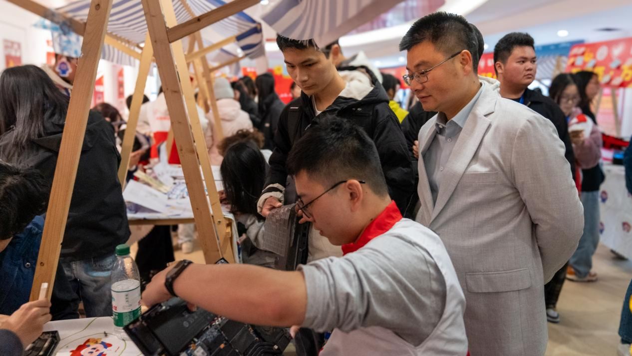 活动吸引了众多学生驻足参与,现场人声鼎沸、热闹非凡。活动内容十分丰富,涵盖了健康服务、文化体验、以物换物、电脑维修以及志愿宣讲等多个环节。参与的同学在各个活动区域穿梭,有的进行视力检测、有的开展手工diy、有的带来电脑进行维修保养……在互帮互助的温暖氛围中,他们既收获了乐趣,又学到了知识。现场来自不同专业和年级的志愿者们身着统一的志愿红马甲,用心用情的为同学们服务,他们用有限的“小我”成就了校园无限的“大我”,展现出了新时代广交青年昂扬奋发、乐于奉献的精神风貌。