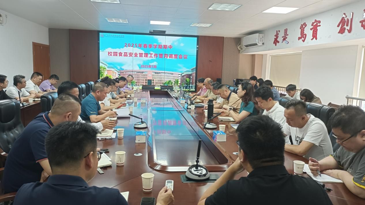 为进一步加强校园食品安全管理工作,切实保障师生饮食安全,5月21日上午,学院在清远校区勤济楼4楼智慧食安指挥中心召开2025年春季学期期中校园食品安全管理工作会议暨月调度会。学院副院长邱文祥,总务后勤部、安全保卫处等部门负责人及食堂公司负责人、食安总监、现场经理等相关人员参会。会议部署了校园食品安全管理工作。总务后勤部副部长朱惠玲主持会议。