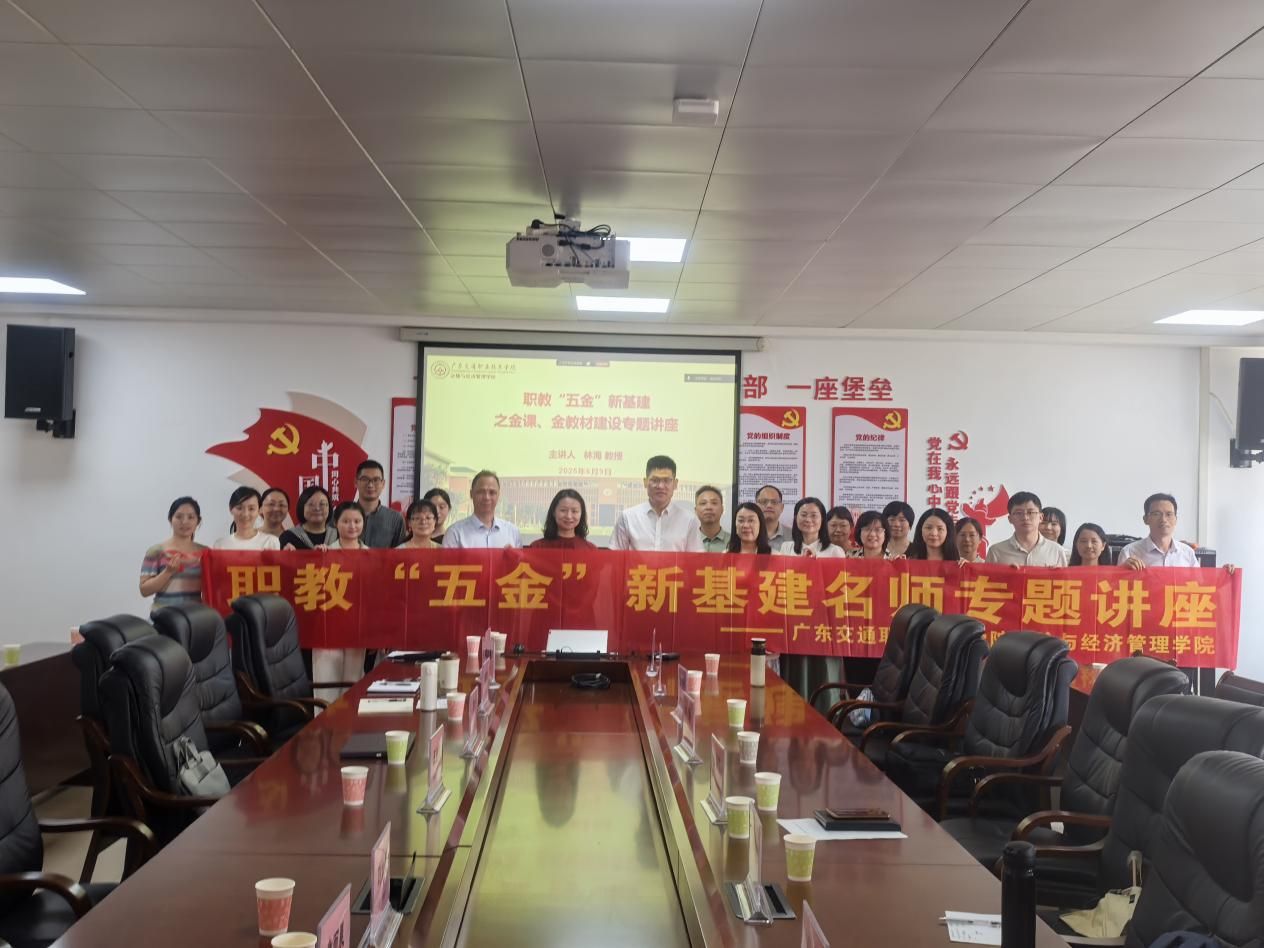 为加强职业教育内涵建设,深入推进职业教育改革,6月9日,我院邀请知名职教专家、广东南华工商职业学院党委书记、校长林海教授莅临我院讲学,以《职教“五金”视角下的课程建设——从人才培养小切口,推动职业教育大改革》为主题开展讲座,会议在清远校区及花都校区同步进行。学院副院长熊嘉逸、王劲松,运输与经济管理学院领导班子及全体教师参加讲座,讲座由运输与经济管理学院副院长赵红英主持。